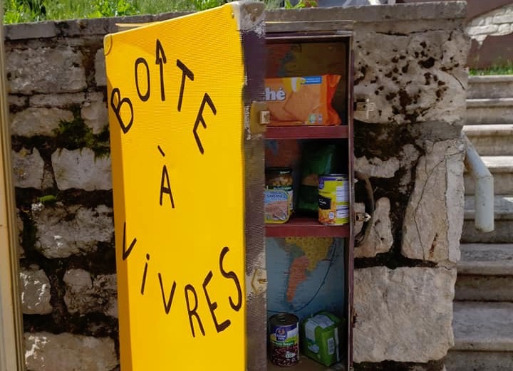 Initiative solidaire de LaC’réactivité. L’association lalbenquoise LaC’réactivité transforme la boîte à livres, implantée en face de la salle des fêtes, en boîte à vivres afin d’aider