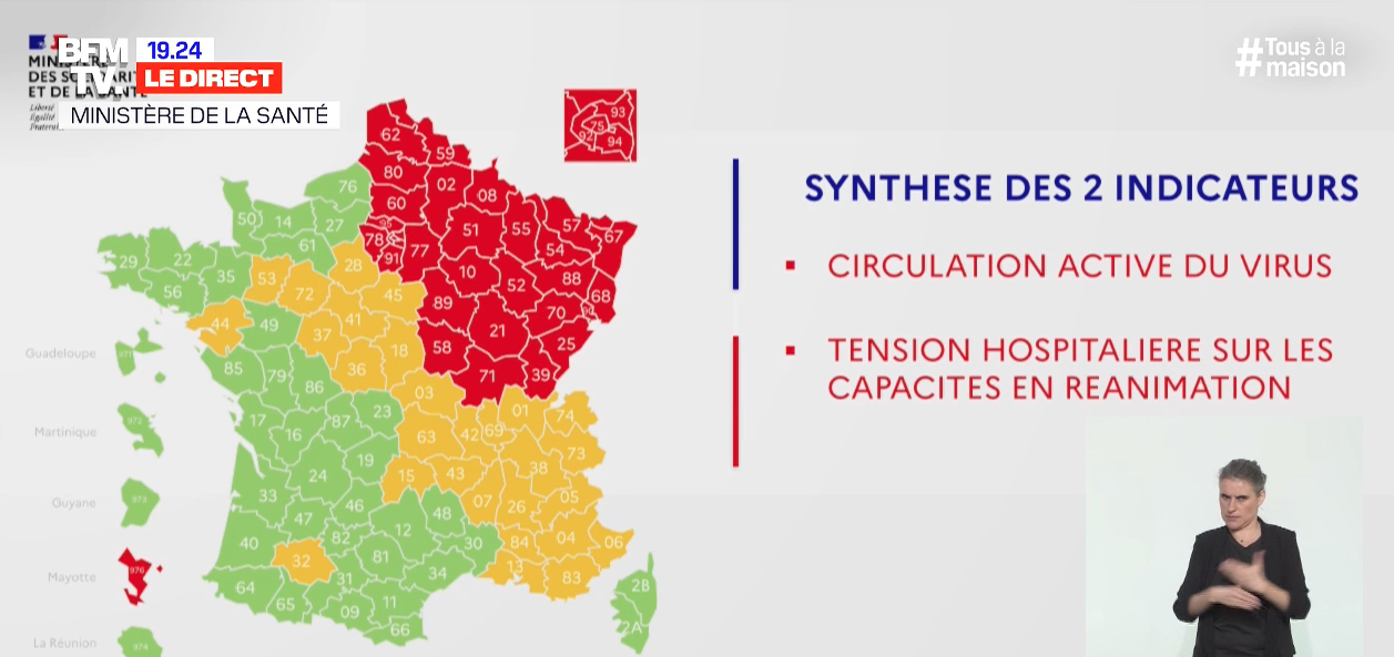 Changement de couleur ce vendredi. Nouvelle carte du déconfinement (qui n’est pas figée jusqu’au 11 mai) présentée par Jérôme Salomon, directeur général de la santé,