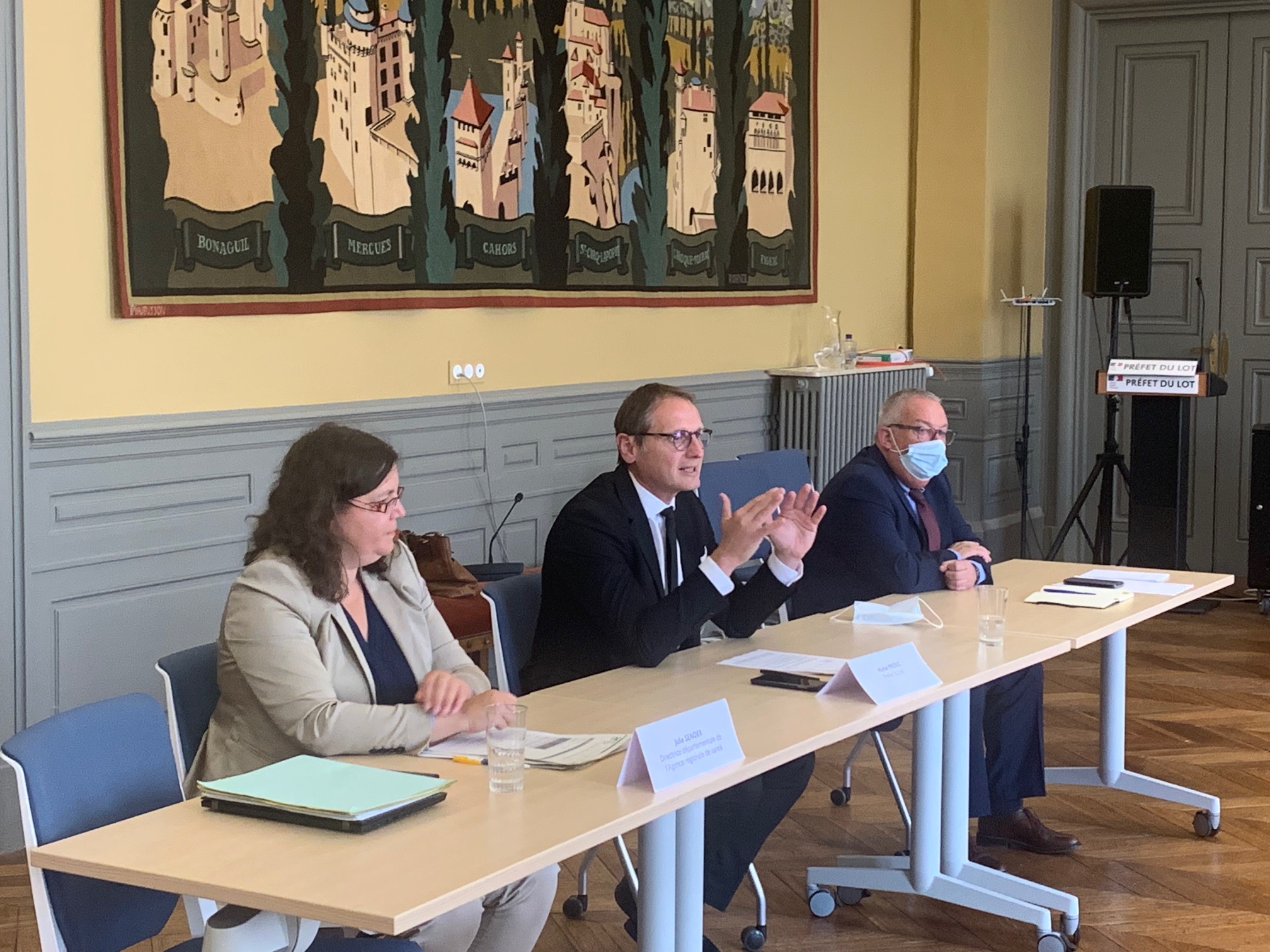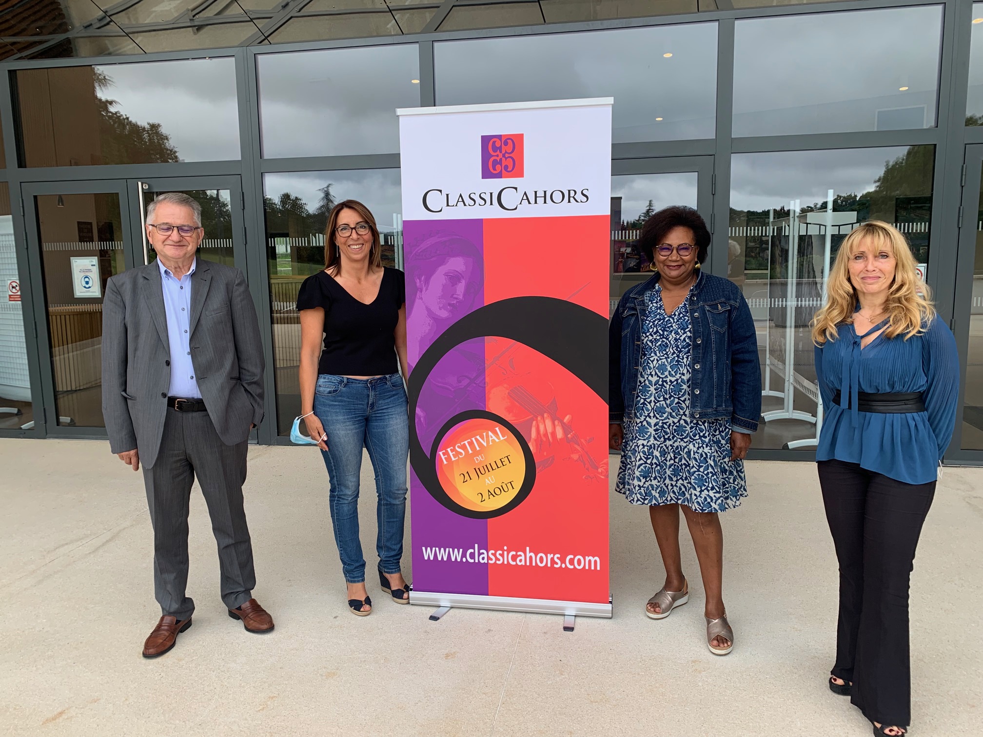 Programmation exceptionnelle. Ce 15 juillet, Sonia Sempéré-Pélaprat, directrice de ClassiCahors, Françoise Faubert, adjointe à la culture à la mairie de Cahors (représentant Jean-Marc Vayssouze), Denis