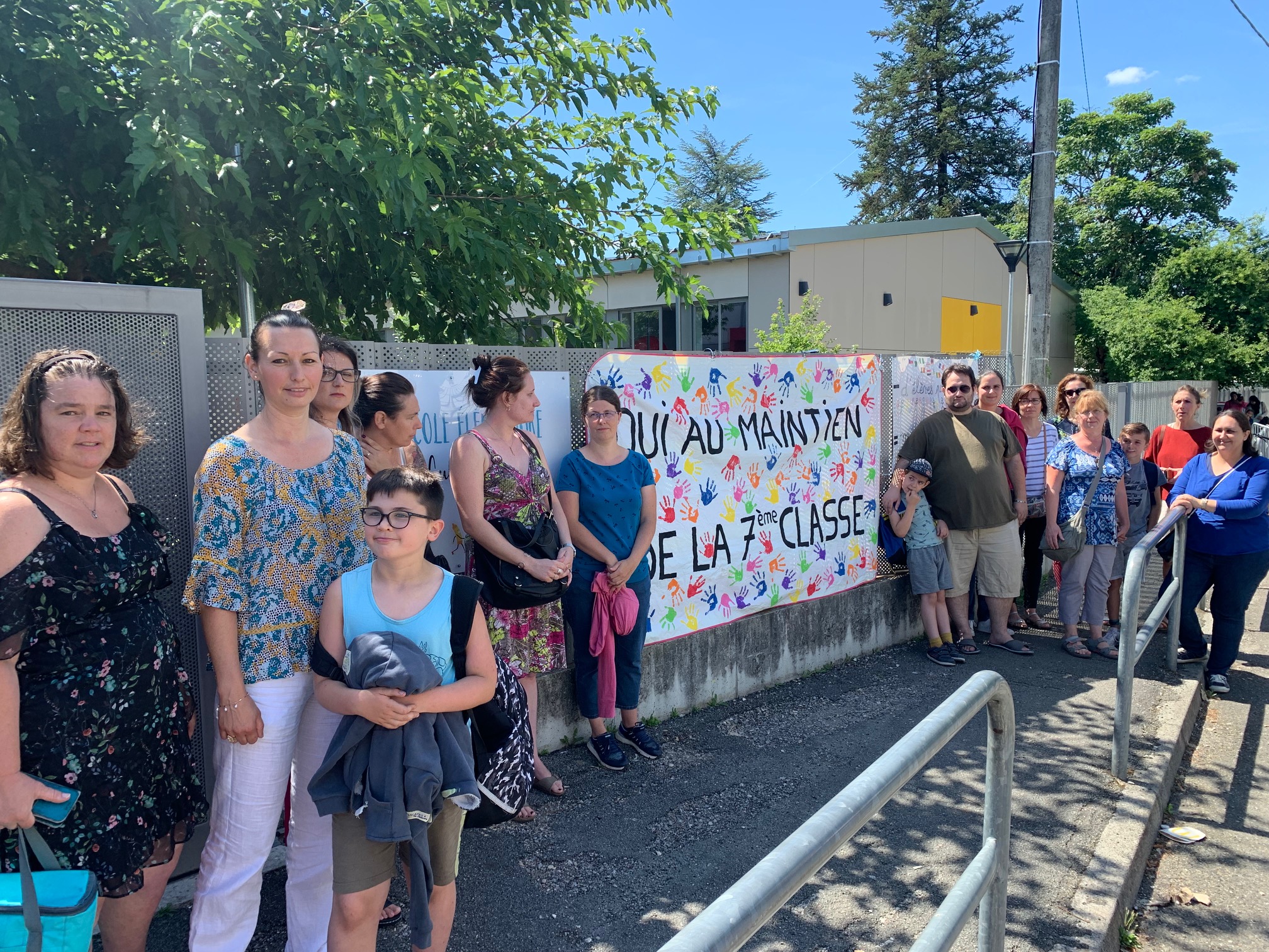 Manifestation devant l’établissement. « Oui au maintien de la classe ». Ce 29 juin devant les grilles de l’école Lucien Bénac, les parents d’élèves ont manifesté pour