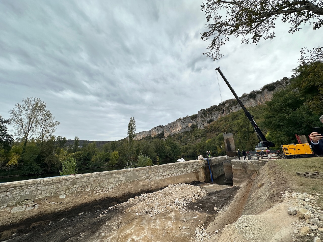 Les travaux devraient se terminer en mars 2024. Ce 18 octobre 2023, Serge Rigal, président du Département du Lot, Frédéric Gineste, vice-président du Département en