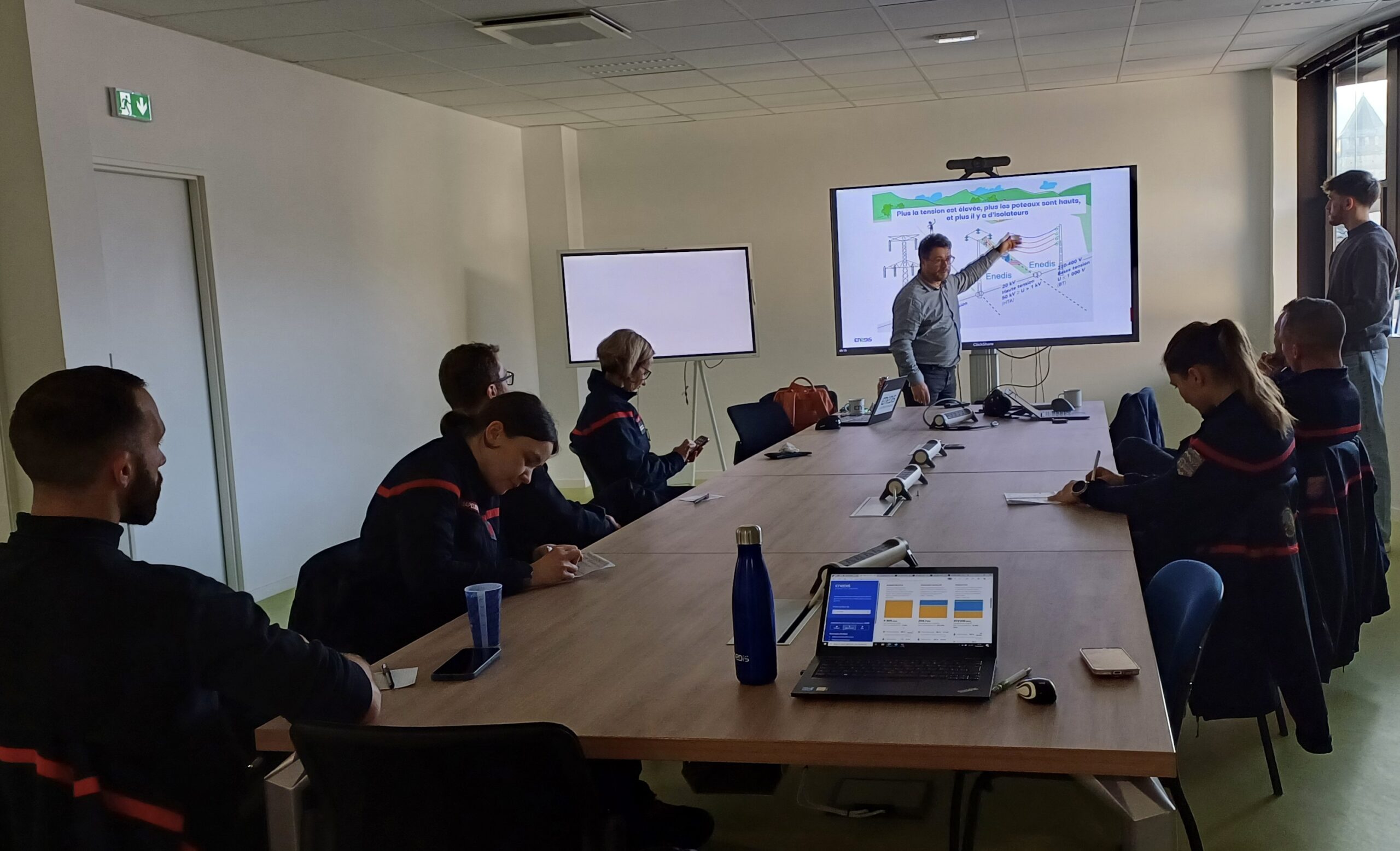Moment d’échanges indispensable. Les pompiers sont amenés à se trouver face à des situations de danger imminent, en lien avec le réseau de distribution d’électricité.