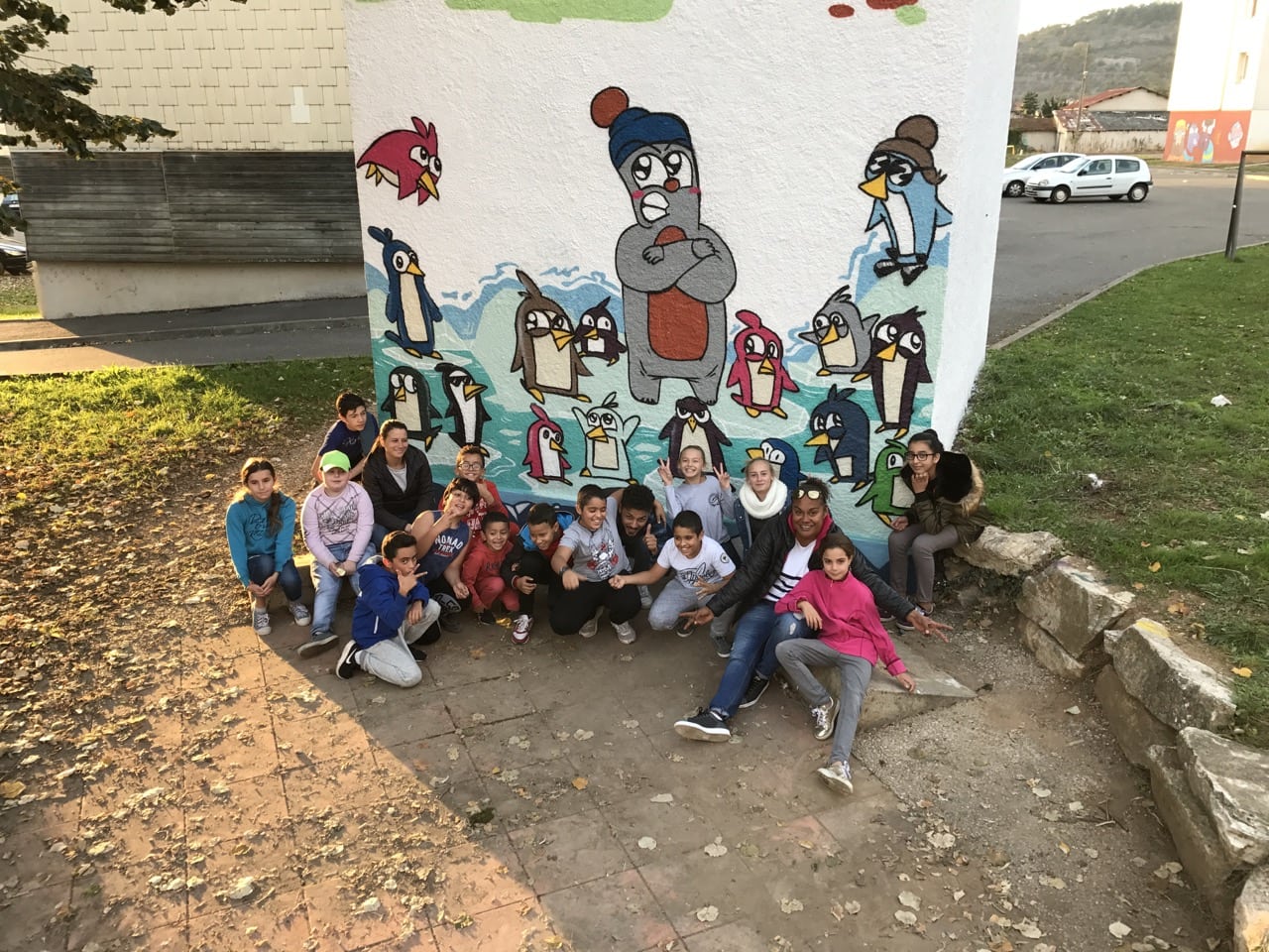 Atelier graff pour les enfants de l’espace social et citoyen de Terre-Rouge. En partenariat avec Enedis, Lot Habitat et la mairie de Cahors, les enfants