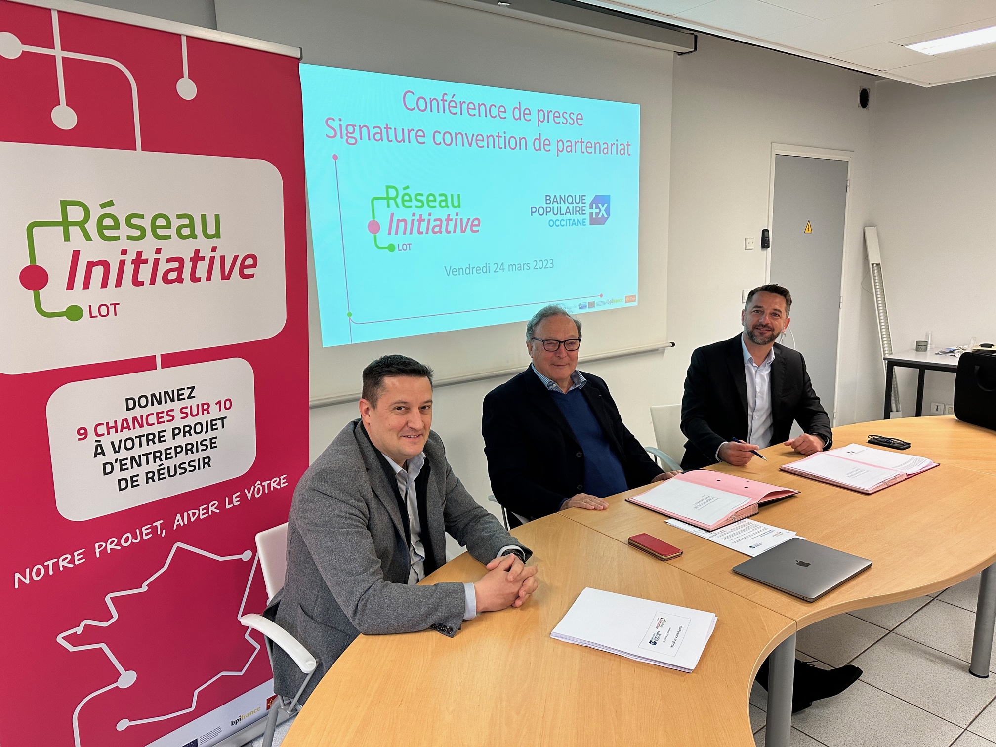 Un plus pour les porteurs de projet. Ce vendredi 24 mars, Michel Hibon, président d’Initiative Lot, et Christophe Maerten, directeur du Groupe d’Agences Banque Populaire