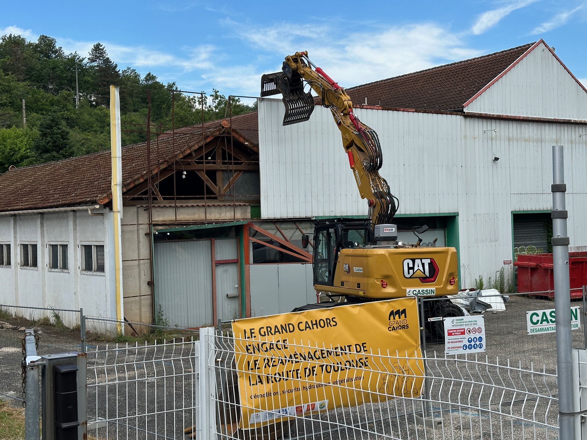 Ce 9 juillet 2024, la démolition du garage ex Happy Car, route de Toulouse, a débuté (il durera plusieurs semaines). Claire Raulin, préfète du Lot, Jean-Luc Marx, maire de Cahors et président de l’agglo, et Célia Moinard de la Direction de l’Habitat, de l’Urbanisme et des Paysages (DHUP) dépendant du ministère de la Transition Ecologique, étaient notamment présents pour cette nouvelle étape «essentielle » du projet de réaménagement de l’entrée sud de la ville. «La route de Toulouse, zone commerciale historique de Cahors, a connu deux inondations majeures en 1996 et 2010. Son urbanisation s’est vue contrainte par un plan de prévention des risques en 2004 visant à ne pas aggraver l’exposition des personnes et des biens. L’interdiction de construire qui en découle a contribué à limiter les possibilités de développement et de modernisation de la zone. C’est dans ce contexte que le Grand Cahors a choisi de faire de ce risque majeur d’inondation une opportunité de requalification urbaine. Ainsi, à l’été 2022, le Projet Partenarial d’Aménagement de l’entrée sud de Cahors a été signé entre l’État, le Grand Cahors et leurs partenaires avec 3 objectifs : assurer la sécurité de la zone en réduisant le risque inondation ; restructurer l’entrée de ville et en faire un véritable quartier ; favoriser la renaturation. Après le contrôle technique à l’entrée de la zone, le garage ex Happy Car va être démoli. Au cours de l’été, plusieurs démolitions interviendront et d’autres suivront en 2025. Elles permettront tant à la fois de servir de zone d’expansion de crues en cas de montée des eaux ou de favoriser la recomposition urbaine et économique de l’entrée de ville. Les choses avancent. On est sensible à ce que le ministère de la Transition Ecologique vienne sur le terrain» a expliqué le premier magistrat. « C’est une étape importante. Il y a une ambition en terme de développement urbain, en terme économique, en terme d’attractivité, et en terme écologique. Nous travaillons main dans la main pour avancer » a souligné la représentante de l’Etat. « Cahors peut être un exemple avec l’objectif de le répliquer » a précisé Célia Moinard. A suivre…