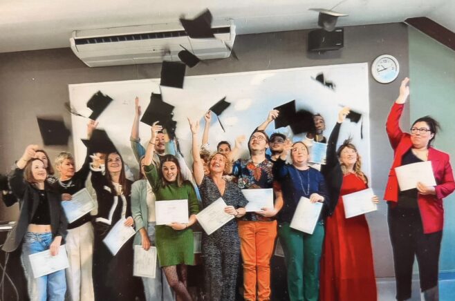 Ce jeudi 2 octobre 2025 était jour de remise de diplômes à l’lFMS du Lot -site de Cahors, 351 rue Saint-Gery. 17 élèves aides-soignants de la promotion 2024-2025 (sur 22) ont pu ainsi jeter leurs chapeaux dans la salle en présence notamment de leurs proches, des enseignants, de Bernard Delpech, vice-président du Grand Cahors en charge de l’enseignement supérieur, et d’Hélène Leneveu-Rivière, adjointe au maire en charge du confortement de la démographie médicale. Félicitations !