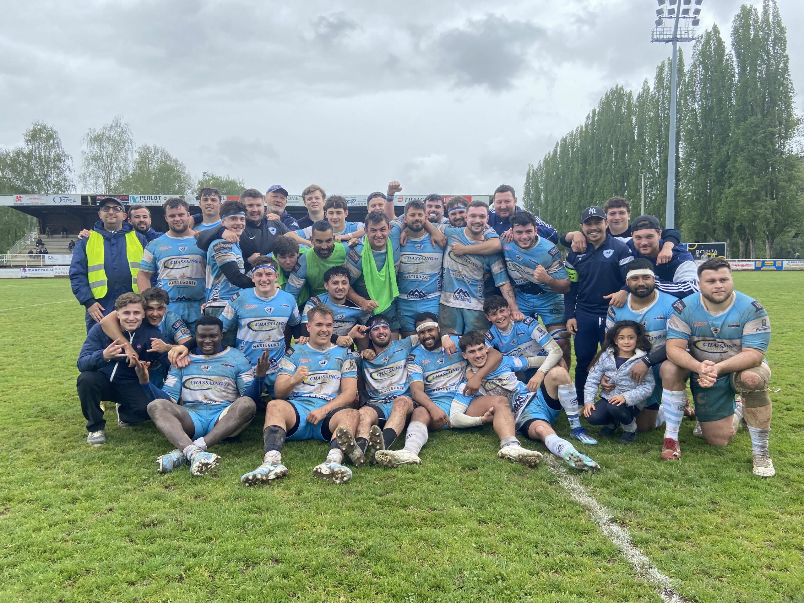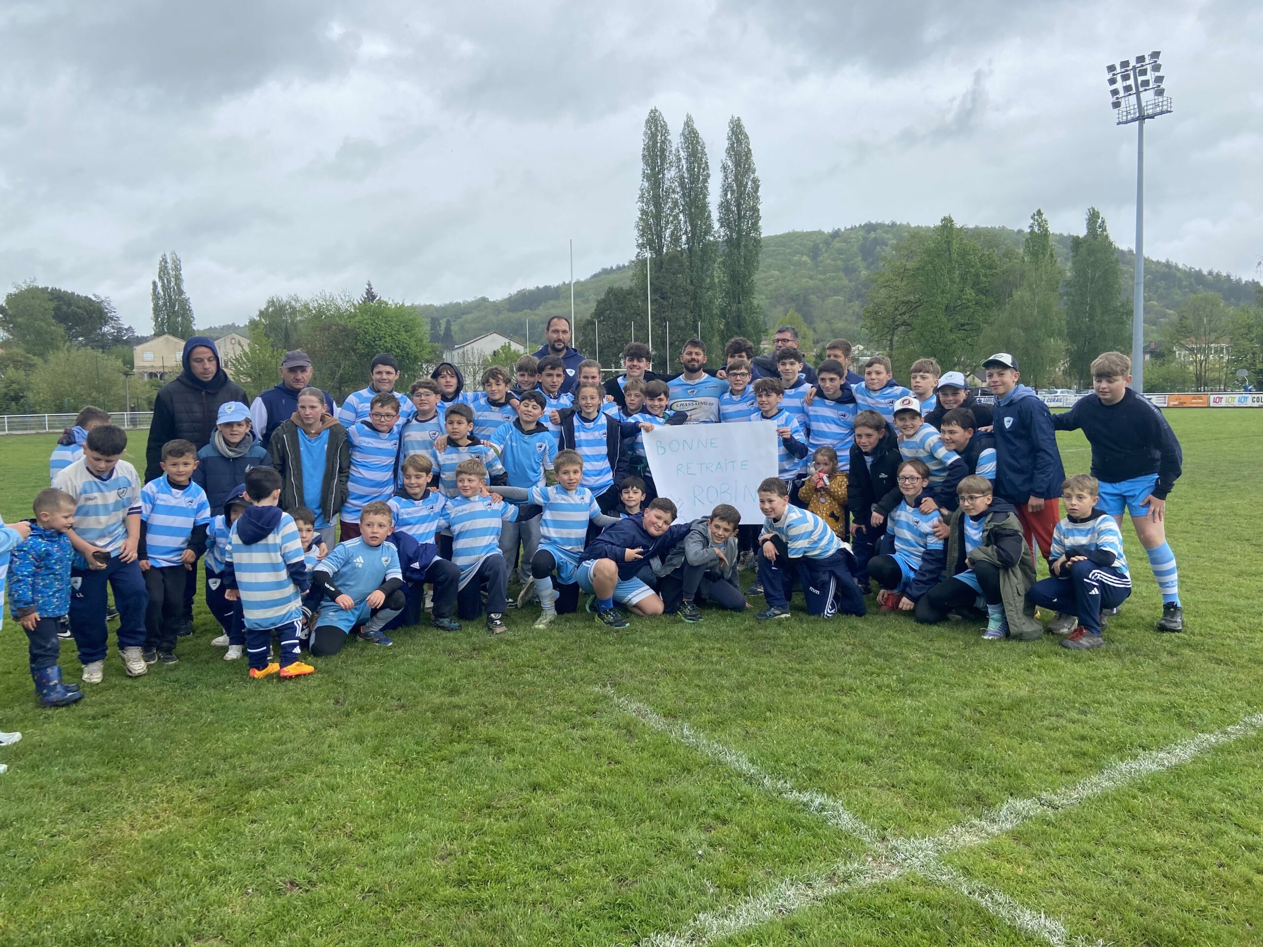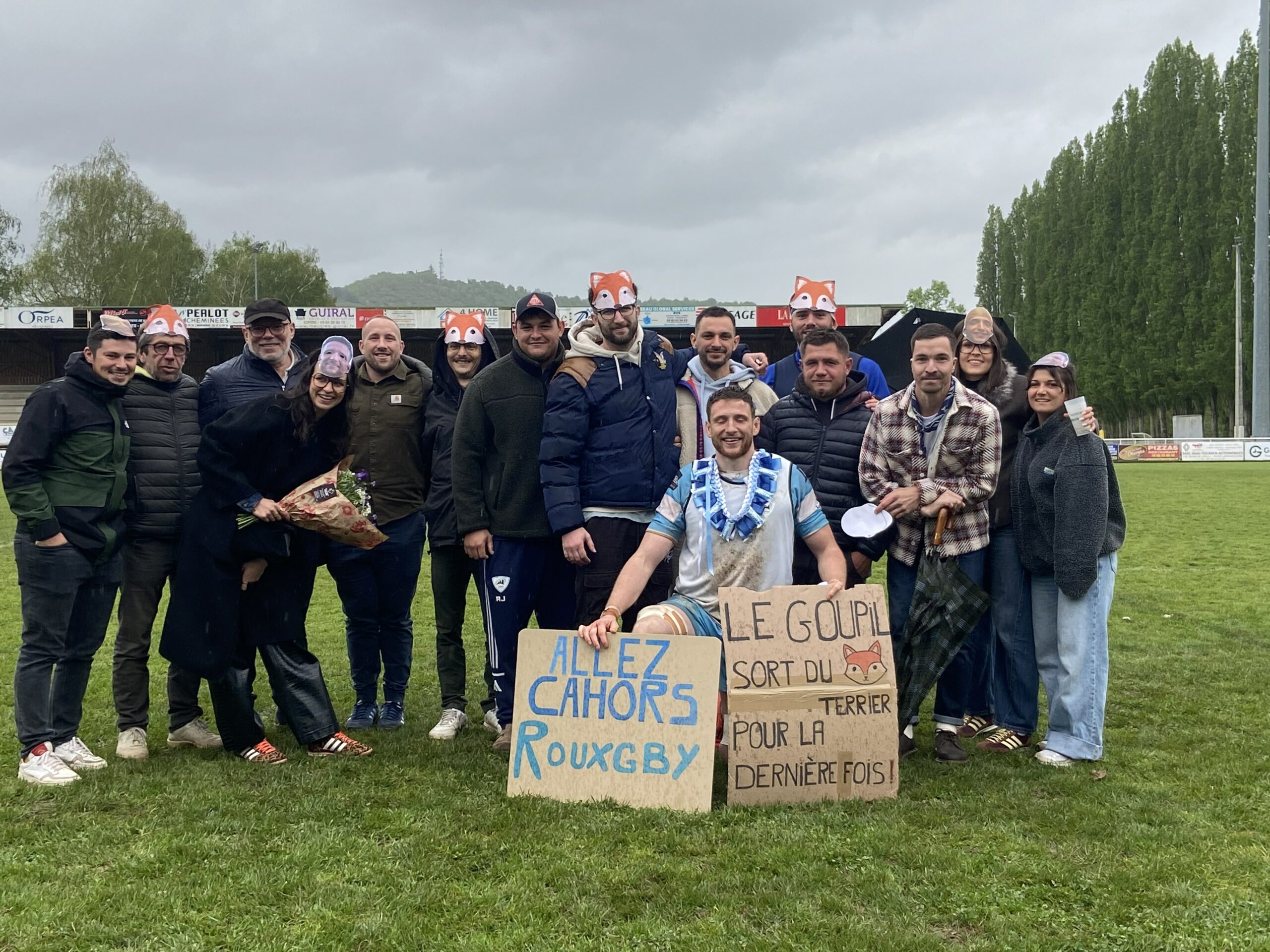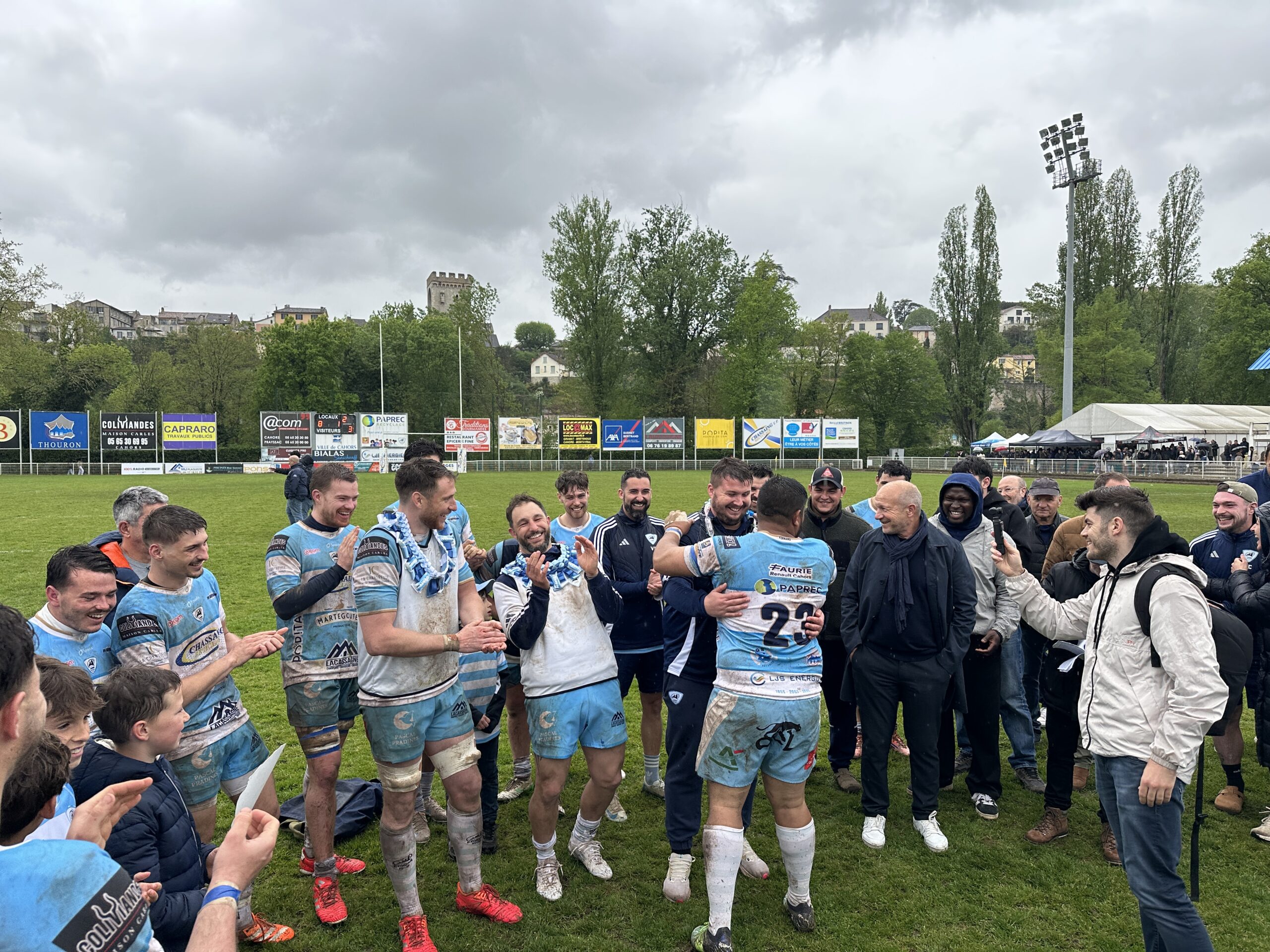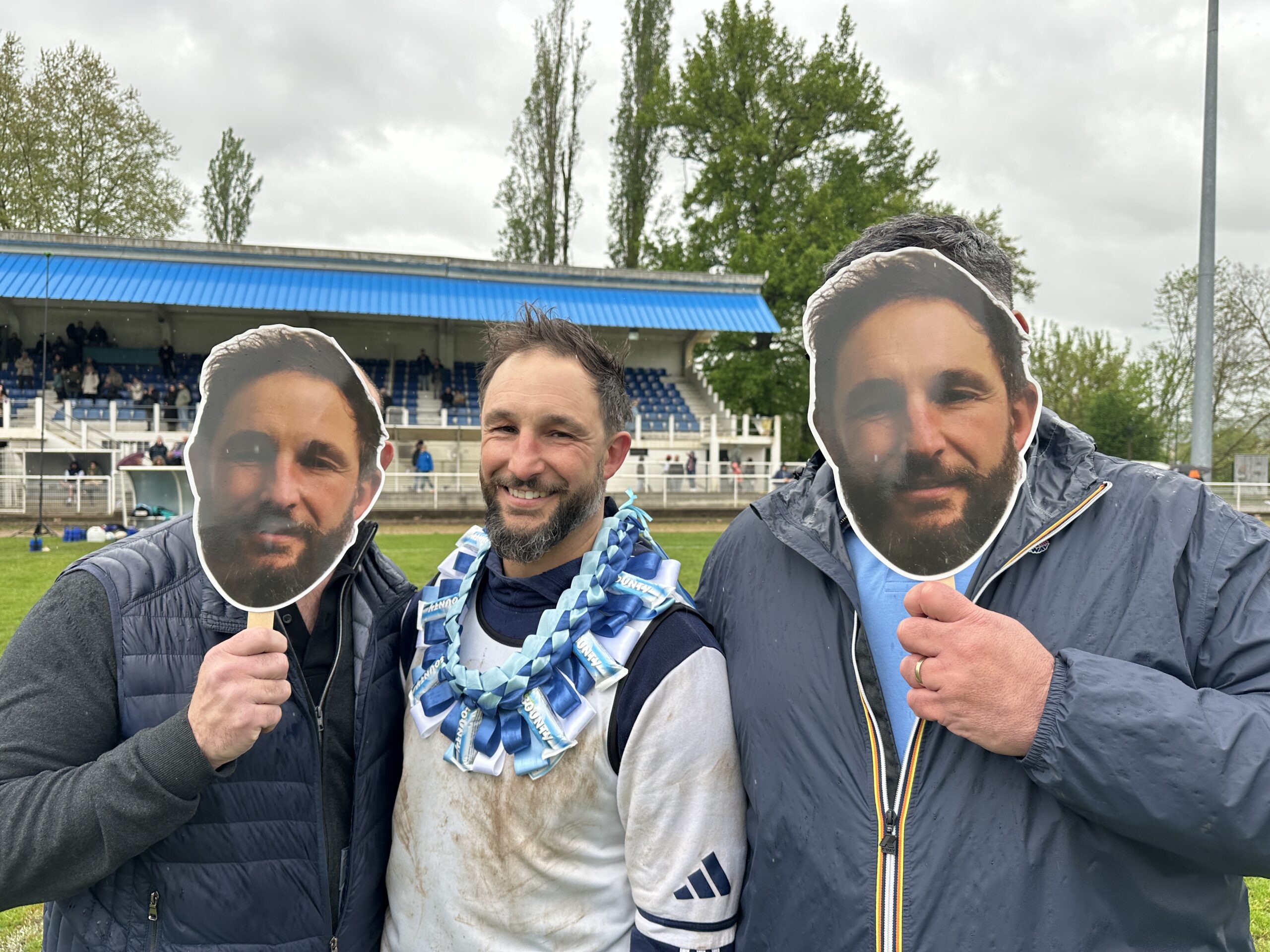 La fête s’est ensuite emparée du stade pour célébrer Thomas Laussac et Alban Manié qui ont reçu une pluie d’hommages et un collier de barres chocolatées coco des mains de Robert Lilomaïava (tout comme Bastien Dupuy, Florian Lagrifoulière, Clément Lefort, Lucas Gaubert, et Robin Morelle). Didier Valade, le président, était particulièrement ému tout comme les néo retraités entourés de leurs familles et amis. Félicitations !