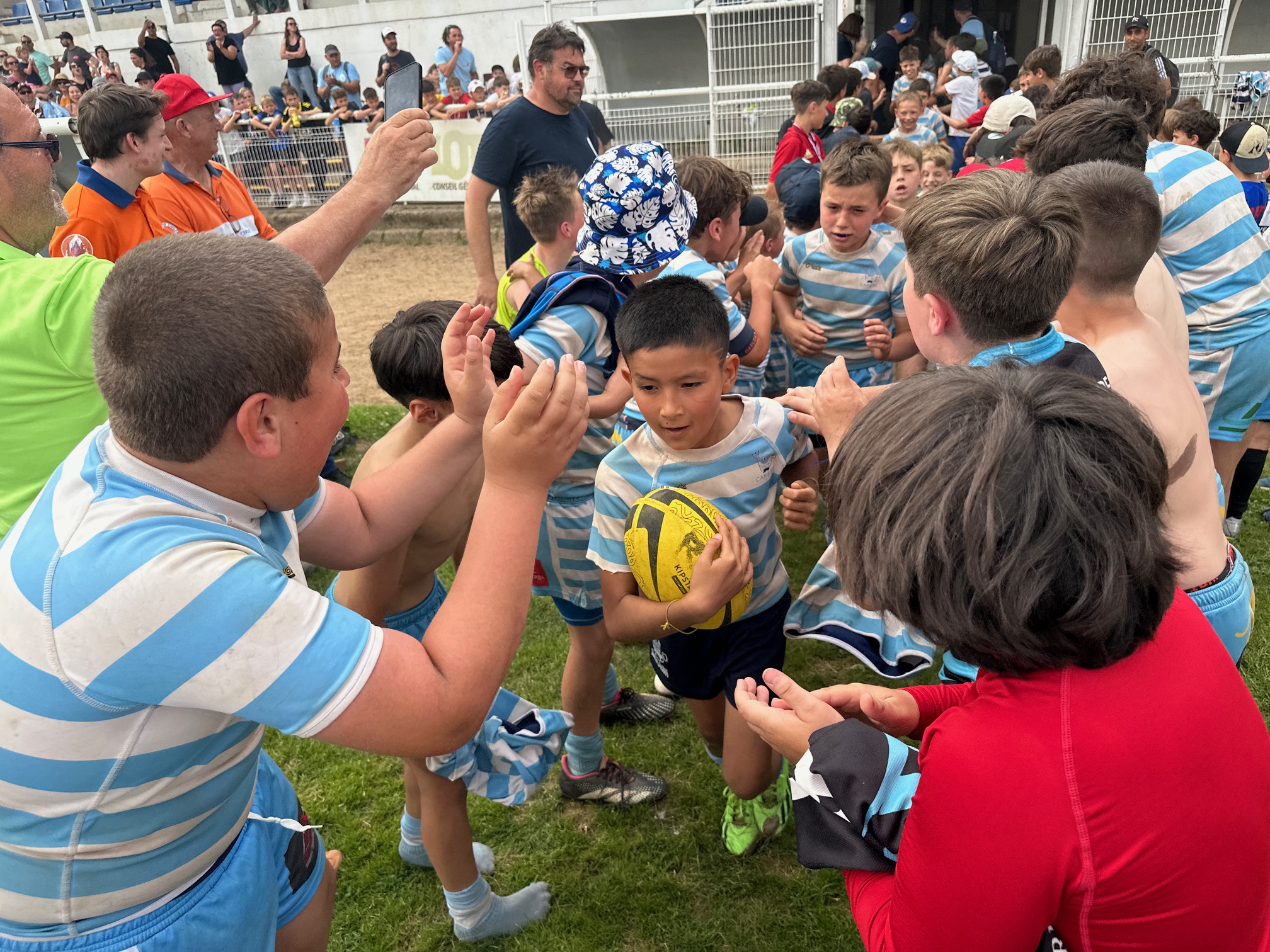23 clubs, plus de 1200 enfants sur le pré, une organisation sans faille. Le tournoi des Petits Diables 2024 organisé par Cahors Rugby a fait carton plein ce samedi 8 juin à Lucien Desprats. Les spectateurs, les parents se sont régalés avec de sacrés matchs et des finales à l’avenant : les M8 de Luzech défaits par Brive, les M10 de Cahors battus par les Narbonnais (leurs copains Ciel et Blanc ont aussi perdu en finale contre le Stade Maursois), les M12 de Colomiers vainqueurs face à Brive… Un grand cru dont voici le classement final :