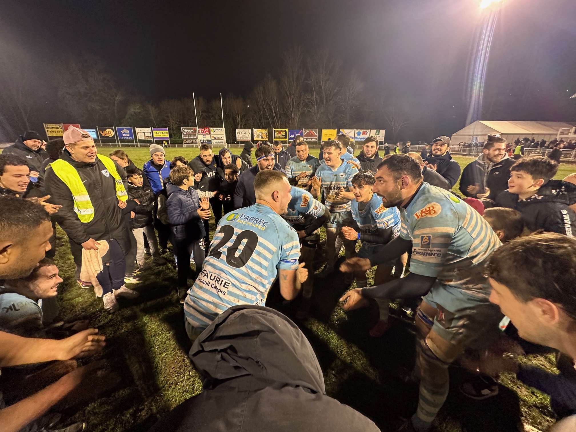 Le vent du boulet n’est pas passé loin pour Cahors Rugby ce samedi soir face à l’Entente Astarac Bigorre. Les supporters présents sont passés par tous les états et seul le dénouement a permis de réchauffer les coeurs. En préambule, les espoirs avaient pourtant régalé décrochant une nouvelle victoire bonifiée sur un score sans appel, 43 à 8. Leurs coéquipiers de la première réalisaient une belle entame pour s’inscrire dans leurs pas. Mattias Nilsson inscrivait ainsi au quart d’heure de jeu un bel essai symbole de la domination albiceleste. Hélas, la machine s’enrayait et les visiteurs revenaient à hauteur juste avant les citrons. 10 à 10. A la reprise, les Gersois ajoutaient un essai sur interception. Uiki Huakau allait à dame pour recoller grâce à un heureux rebond. 17 à 17 puis 20 à 20. A la 63ème, les Ciel et Blanc encaissaient un nouvel essai non transformé. Les minutes défilaient, les pensionnaires de Desprats enchainaient les temps de jeu. Sur la dernière pénalité jouée à la main, et après 3 séquences au ras, le jeune Théo Cammagre, qui a fait une belle rentrée, envoyait Mera Getsadze en terre promise. L’arbitre sifflait la fin des débats juste après la transformation. Score final, 27 à 25. « L’essentiel est là. On est encore sur l’objectif de remporter les 3 matchs du bloc. Il y a encore du boulot » a confié Didier Valade, le président du club. « Je suis content de retrouver le groupe. On avait la pression. On a retrouvé un état d’esprit face à une belle équipe. Il y a encore du travail » a indiqué Thomas Laussac, l’arrière des Ciel et Blanc.