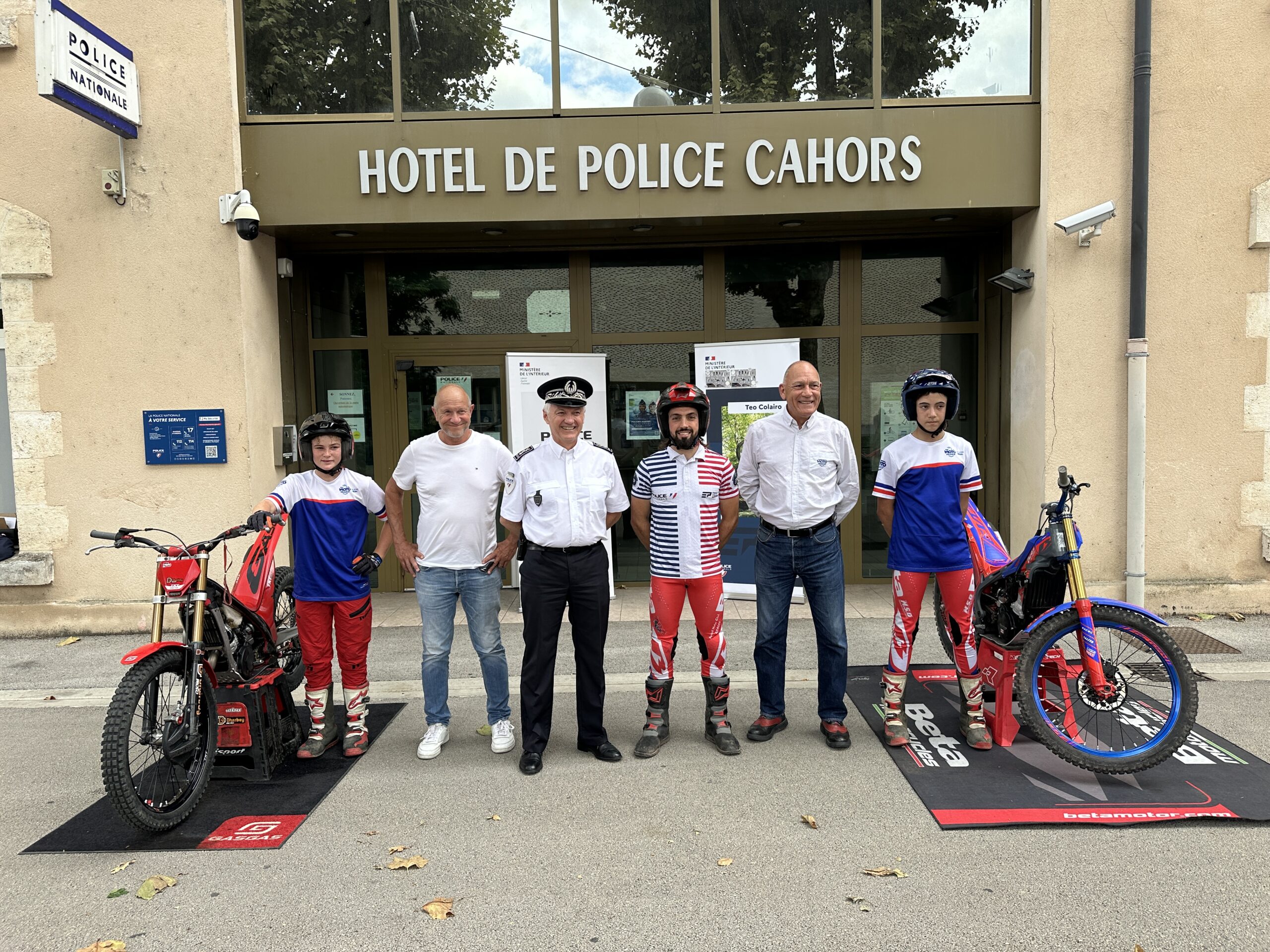 Sportif de haut niveau en moto Trial, membre de l’équipe de France Police Nationale, champion d’Europe 2024, Téo Colairo sera au rendez-vous de la 1ère manche du championnat de France de Trial Urbain qui se déroule à Cahors ce dimanche 27 juillet 2025. Gardien de la paix rattaché au commissariat de Toulon, celui qui a commencé comme policier adjoint a assuré une démonstration ce 26 juillet 2025 devant le commissariat de Cahors aux côtés de Théo Flourette, et Arnaud Ceris, membres de l’équipe de France Espoir Europe, qui vont concourir ce dimanche dans la catégorie TX2. Didier Valade du Cahors Trial Club, et François Courbouleix, président de la commission nationale du Trial, étaient présents comme le commissaire divisionnaire Philippe Surlapierre, Directeur départemental de la police nationale du Lot. « Téo Calairo est un exemple notamment en cette période de recrutement de policiers adjoints qui seront affectés au commissariat de Cahors » a précisé le commissaire. « Depuis 2014, j’ai toujours été au rendez-vous cadurcien. Cette année, c’est un format que l’on retrouve. Je suis là pour me faire plaisir » a conclu Téo Colairo.