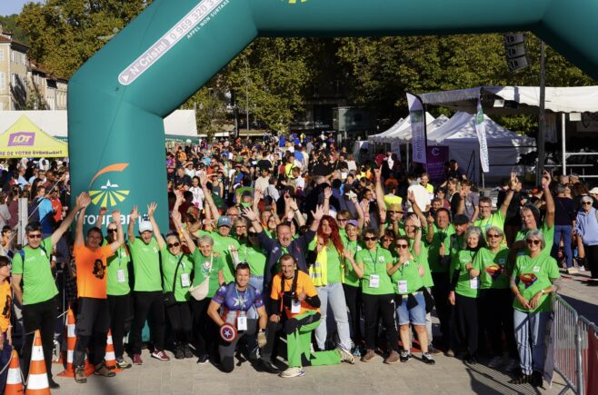 Un Ekiden de Cahors 2025 record avec des Super-Héros Grand Coeur qui ont donné le ton de cette manifestation solidaire. Course en relais (avec des enfants déchaînés et des accompagnateurs qui ont suivi tant bien que mal), marche, DJ Hugo GRD aux platines sur le boulevard, la fanfare Bubble Band en mode déambulation… le cocktail était parfait ! Benoit Bosc, le maître de cérémonie, est revenu sur ce grand cru : « Nous avions 281 équipes engagées soit 1686 participants, 50 équipes enfants, 400 marcheurs, 4 joëlettes et l’équipe du rugby XIII fauteuil. Il y avait au moins 2000 personnes dans le public. Merci à la météo, aux Super Héros au Grand Coeur qui ont joué le jeu comme jamais pour le plus grand plaisir des enfants et des adultes. Ils ont été surpris par le monde, l’accueil et l’organisation. Et bien sur merci aux bénévoles et aux partenaires. » A l’année prochaine !