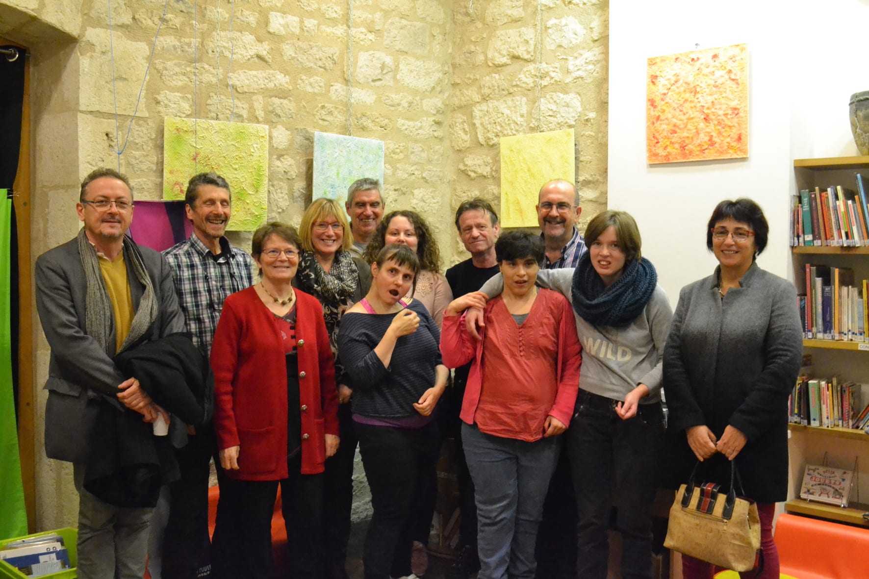 Le vernissage des peintures d’une dizaine de résidents de la Maison d’Accueil Spécialisée « Le Chemin d’Eole » a fait salle comble le 29 novembre dernier. Installées aux différents étages et salles de la médiathèque des créations hautes en couleur, faisant déjà preuve de technique, de créativité, charmaient et étonnaient agréablement les nombreux visiteurs. L’équipe de la structure, au complet, Sabine, Yves et Coreïa ne manquait pas de faire l’éloge des artistes.
