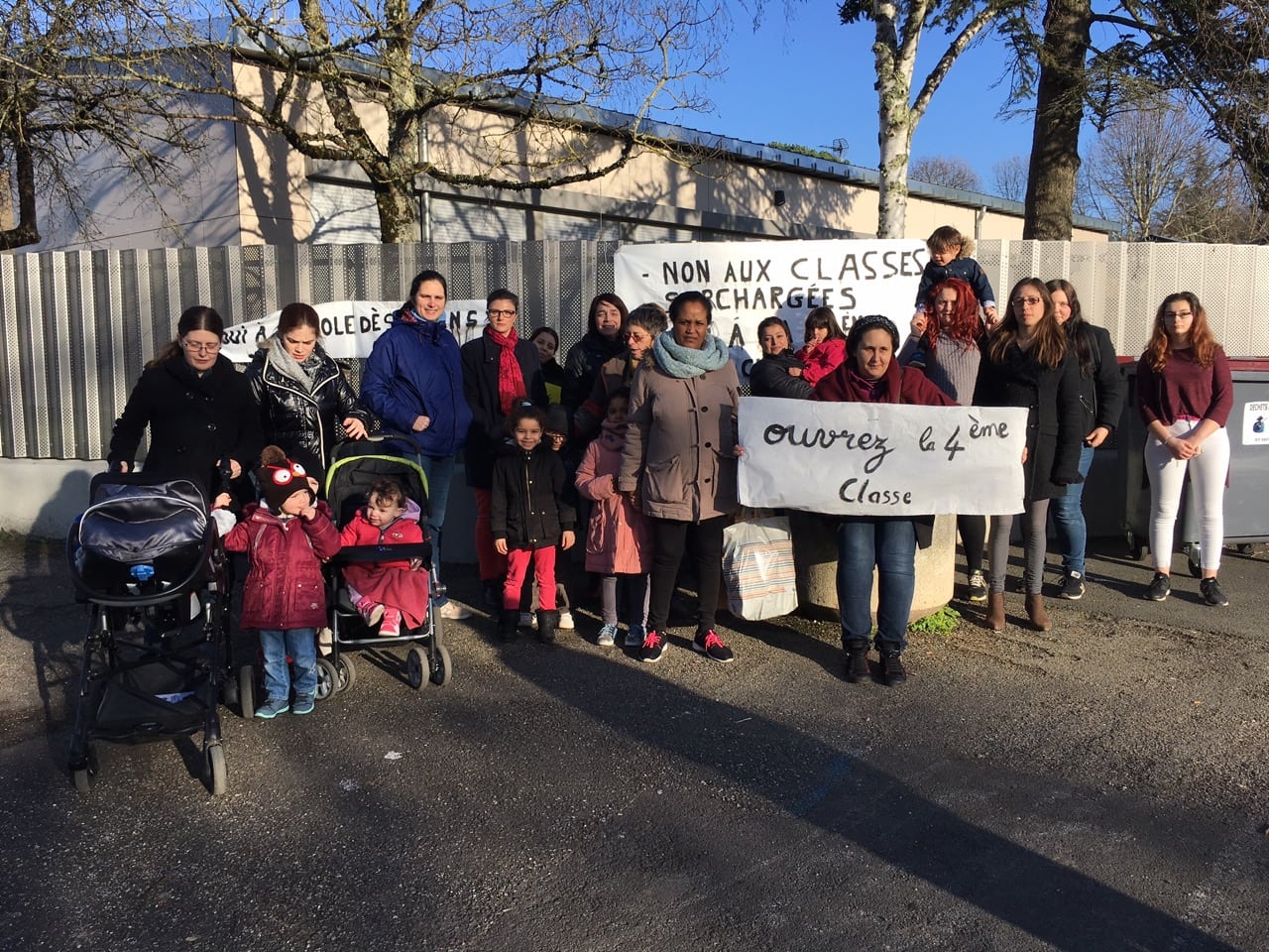 Ils se sont rassemblés devant l’école. « Non aux classes surchargées ». « Ouvrez la 4ème classe ». Les parents d’élèves de l’école Lucien Bénac se sont rassemblés le