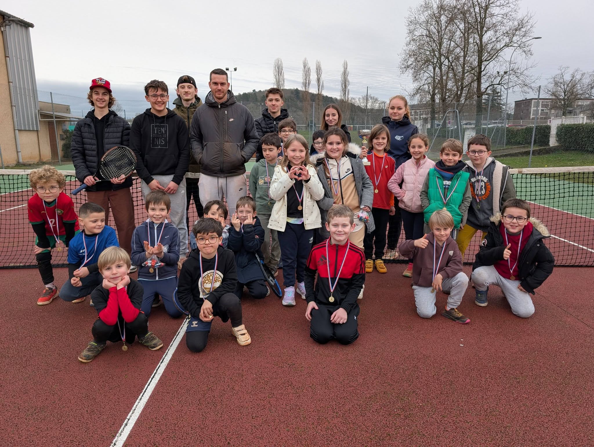 Dans le même temps, sur les installations cadurciennes, se tenait un plateau du circuit « Piou Piou ». Impulsé par le Comité Départemental du Lot, ce circuit propose aux 5-10 ans jouant en balles rouges de disputer des petits matchs tout au long de l’après-midi. Aux manettes pour accueillir les 18 graines de champions, Alexis Brigand, le coach, assisté de huit jeunes du club qui avaient la mission d’arbitrer les parties. Les enfants, venus de Calamane, Pradines, Gourdon (et Cahors !) étaient ravis de pouvoir jouer « comme les grands » et tous sont repartis avec une médaille et des friandises.