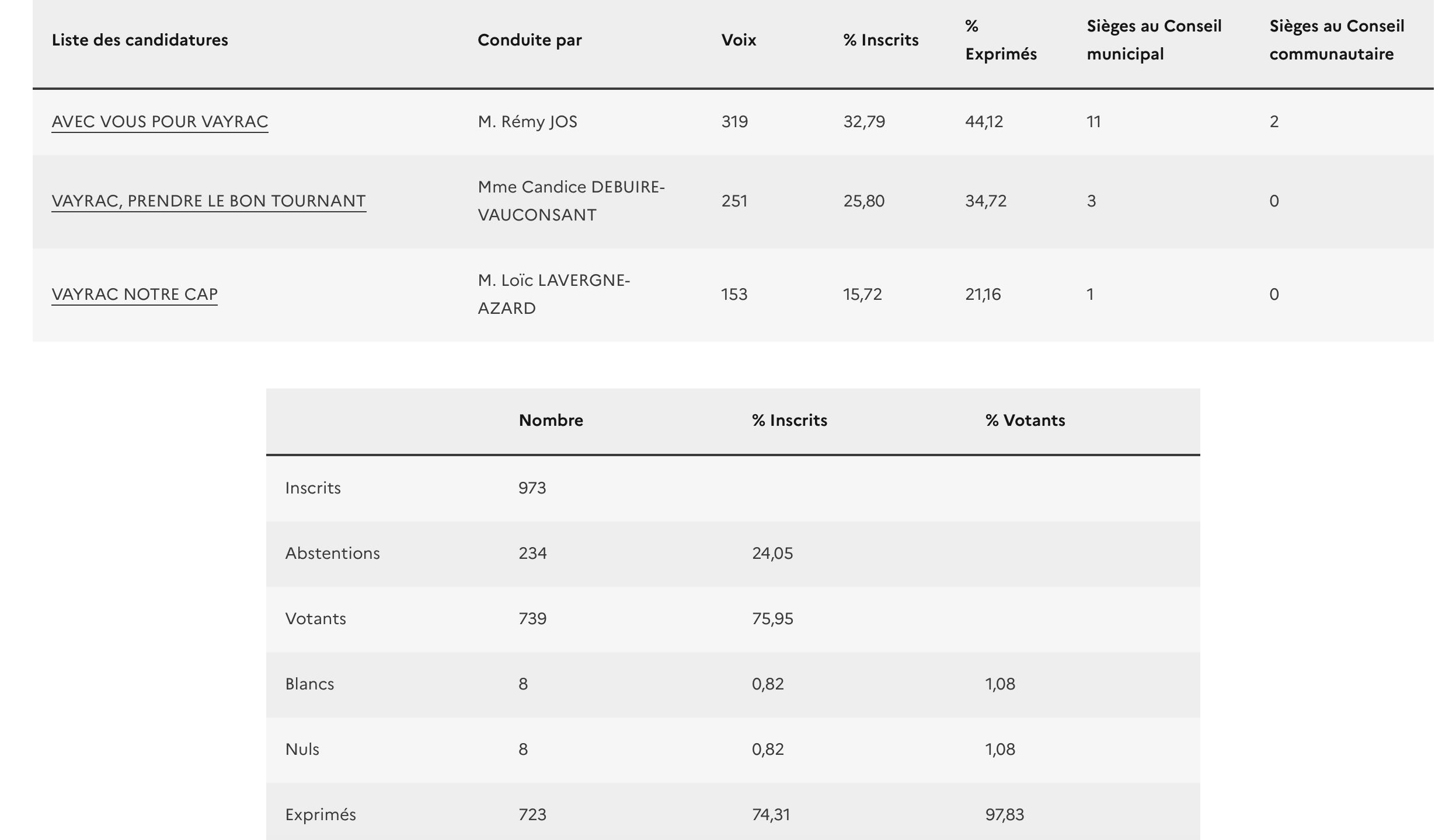 Le second tour des élections municipales a rendu son verdict à Vayrac et Couzou avec les victoires de Rémy Jos et de Catherine Larrière.