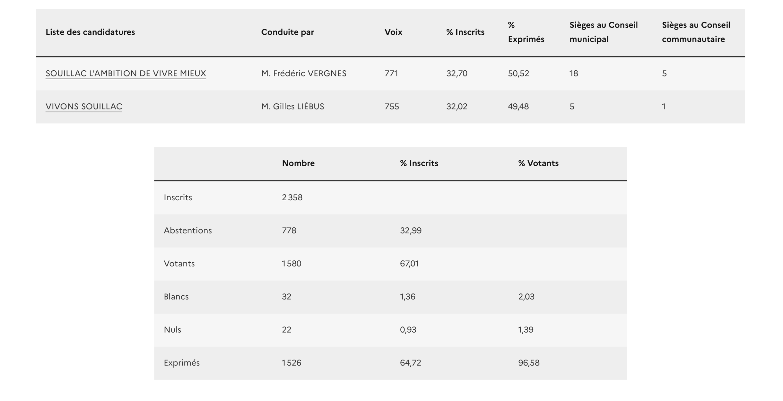 Victoire de 16 voix pour Frédéric Vergnes et la liste « Souillac, l’ambition de vivre mieux » face au maire sortant, Gilles Liébus.