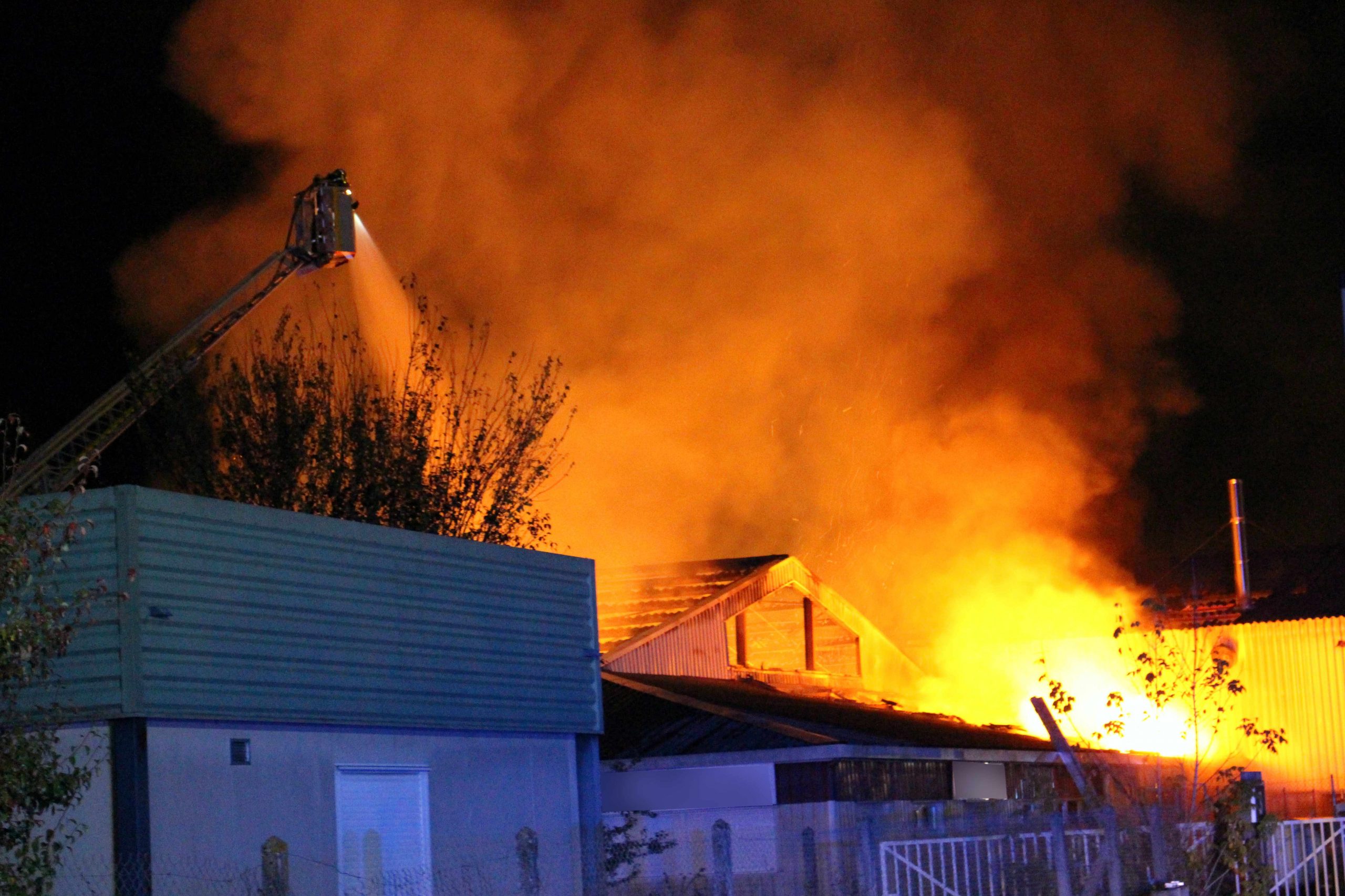 Les premiers moyens engagés sur site ont été confrontés à l’incendie généralisé d’un bâtiment de 2 000 m2 au sol à usage de production de copeaux de bois. Outre l’attaque du foyer, plusieurs mesures de protection ont été mises en œuvre. La première des mesures a consisté à éviter la propagation de l’incendie aux locaux administratifs attenant d’une surface de 200 m2. De la même manière, deux cuves de propane de 3,5 tonnes chacune située à l’extérieur du bâtiment en feu ont également fait l’objet d’un dispositif de protection particulier. Enfin, des moyens ont également été mobilisés afin de protéger un important stock de matière première (bois) et d’autres bâtiments situés sur le site.