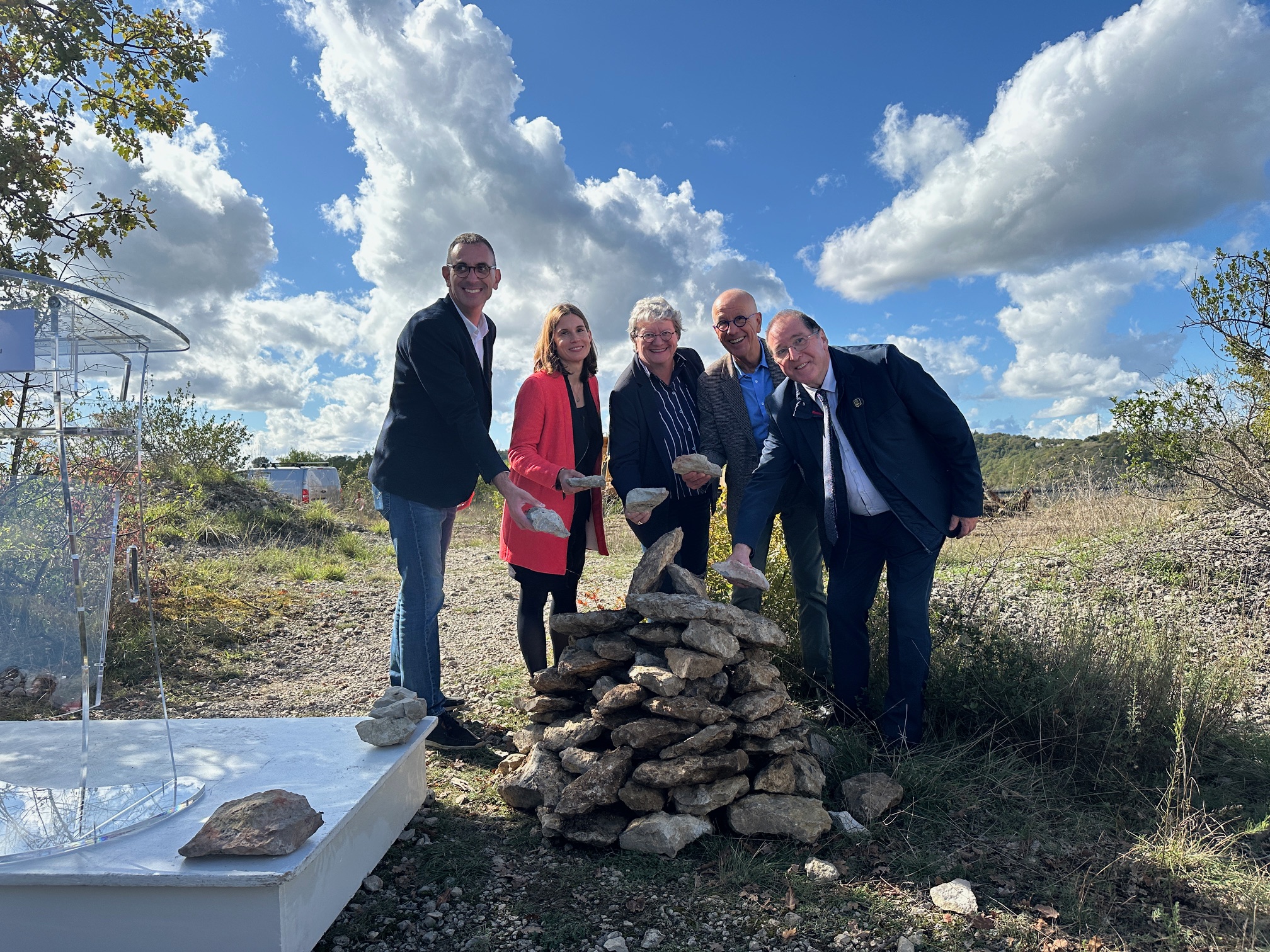 « Ce sera la fin des périodes de turbidité synonymes de distribution de bouteilles d’eau ». Ce 8 octobre 2024, Jean-Luc Marx, président du Grand cahors, Serge Rigal, président du Département du Lot, Didier Boutard, président du Syndicat eau potable – assainissement du Quercy Blanc, Pauline Rattez, directrice de la Délégation Garonne et rivières d’Occitanie – agence de l’eau Adour-Garonne, et Adeline Bard, secrétaire générale de la préfecture du Lot, ont posé la première pierre de l’unité d’ultrafiltration de l’eau de la fontaine des Chartreux sur le plateau du Pech d’Angely.
