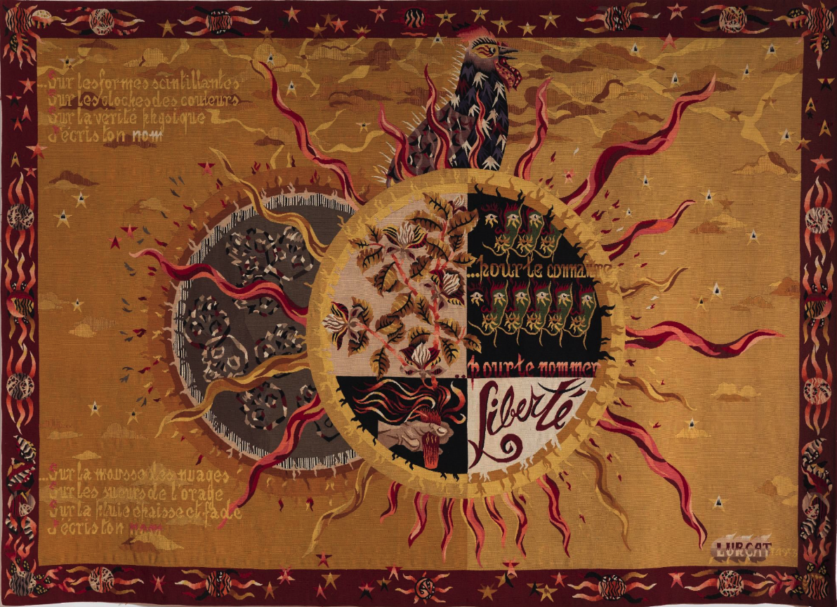 « Et au premier étage, où sont les tapisseries modernes, arrêtez-vous, je vous en prie, devant celle qui fut conçue par Lurçat, tissée dans l’atelier de Goubely, en 1943, à Aubusson. Là cinquante ouvriers fabriquèrent dans le secret, pendant des mois, au péril de leur vie, cette tapisserie de huit mètres où ils ont fixé à jamais dans la trame les vers clandestins de Paul Eluard : Je suis né pour te connaître – Pour te nommer, Liberté. »
