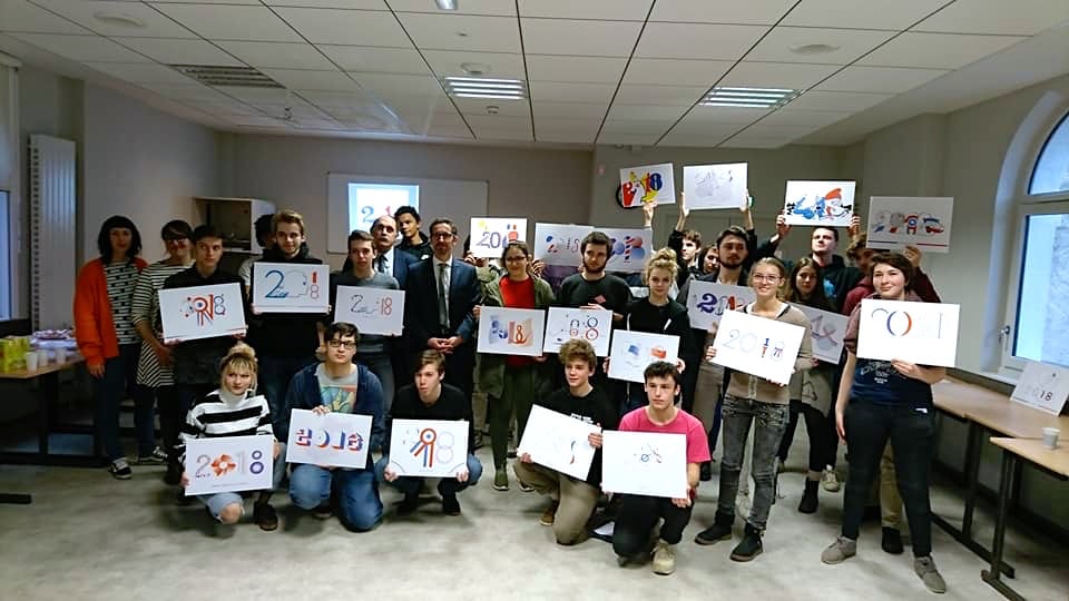 Vendredi 20 décembre, Jérôme Filippini, préfet du Lot, a rendu visite aux étudiants de la classe de 1ère communication visuelle et plurimédias du lycée Saint-Étienne de Cahors afin de leur annoncer la carte de voeux sélectionnée des services de l’Etat dans le Lot. Ces jeunes artistes citoyens ont planché plusieurs mois sur ce projet. Au total, le service communication interministérielle a ainsi reçu 26 réalisations. Un jury a présélectionné 4 cartes de voeux, puis ce sont tous les agents des services de l’État (préfecture, DDT, DDCSPP, … ) qui ont voté pour sélectionner la carte de voeux gagnante. La création de Lola Lemaire a remporté le plus de suffrages.
