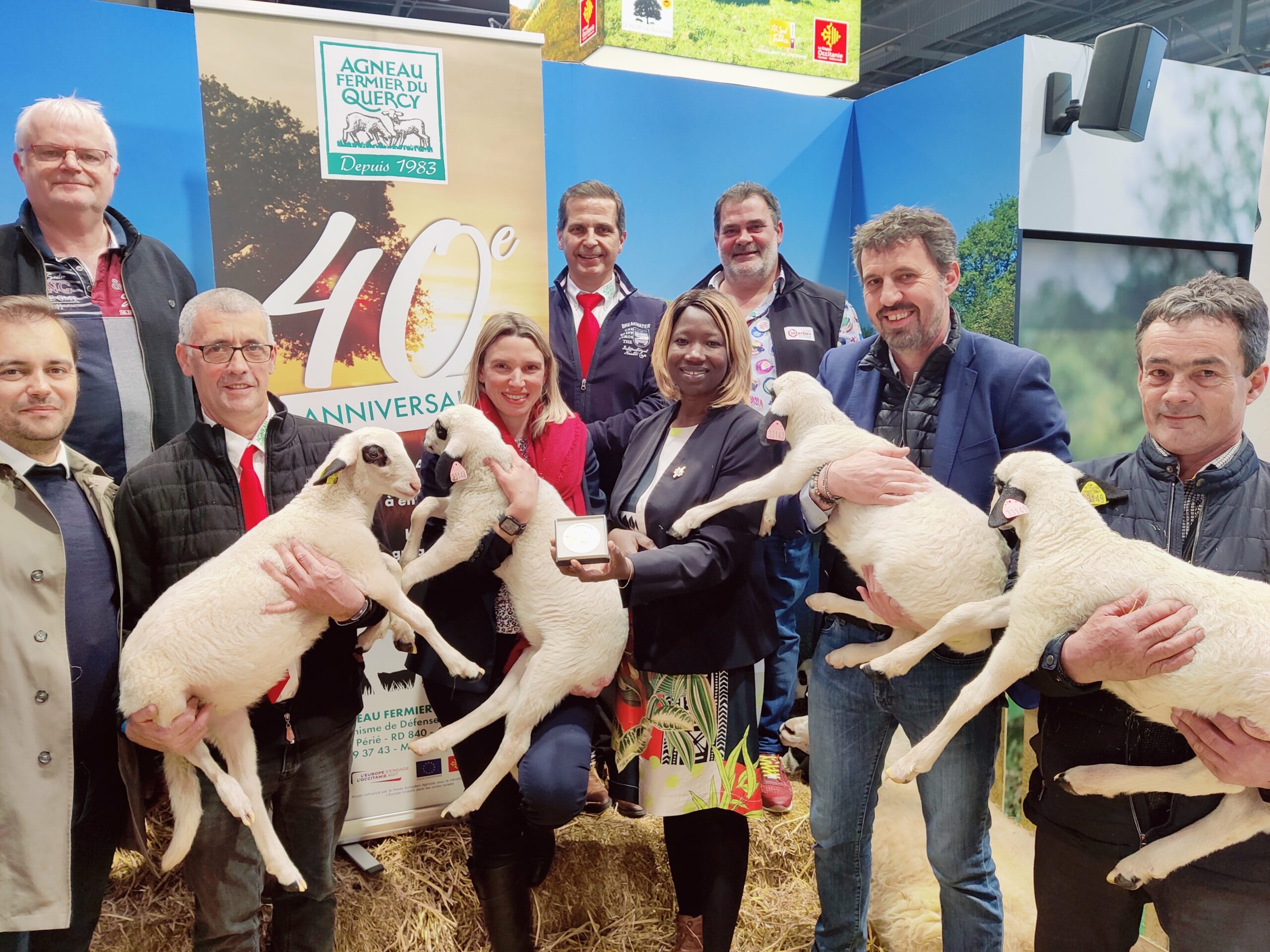 Huguette Tiegna, députée du Lot, a remis ce mercredi 1er mars 2023 la médaille de l’assemblée nationale aux représentants du Label rouge Agneau Fermier du Quercy. À l’occasion des 40 ans du Label, sur le stand des producteurs lotois, la parlementaire, accompagnée de Laëtitia Saint-Paul, présidente du groupe d’études parlementaire sur l’eau et la biodiversité, a tenu à valoriser la qualité de la production locale par cette gratification. « C’est un grand plaisir pour moi d’être présente sur le stand des Causses du Lot et de mettre en avant le travail et le savoir-faire des agriculteurs, a déclaré Huguette Tiegna. Les enjeux de souveraineté alimentaire, de transition environnementale, de préservation de notre savoir-faire et de transmission des exploitations sont prépondérants pour l’avenir de nos territoires. En tant que parlementaires, nous devons accompagner les agriculteurs face à ces défis » a-t-elle déclaré. Étaient notamment présents aux côtés d’Huguette Tiegna : Christophe Canal, président de la Chambre d’agriculture du Lot ; Alain Lafragette, président de la FDSEA 46, Jean-Claude Goudoubert, président de l’association de l’Agneau Fermier du Quercy, Rémi Branco, vice-président du Département du Lot, et Laurent Flaujac, président du syndicat des bouchers du Lot, et boucher sous les Halles à Cahors.