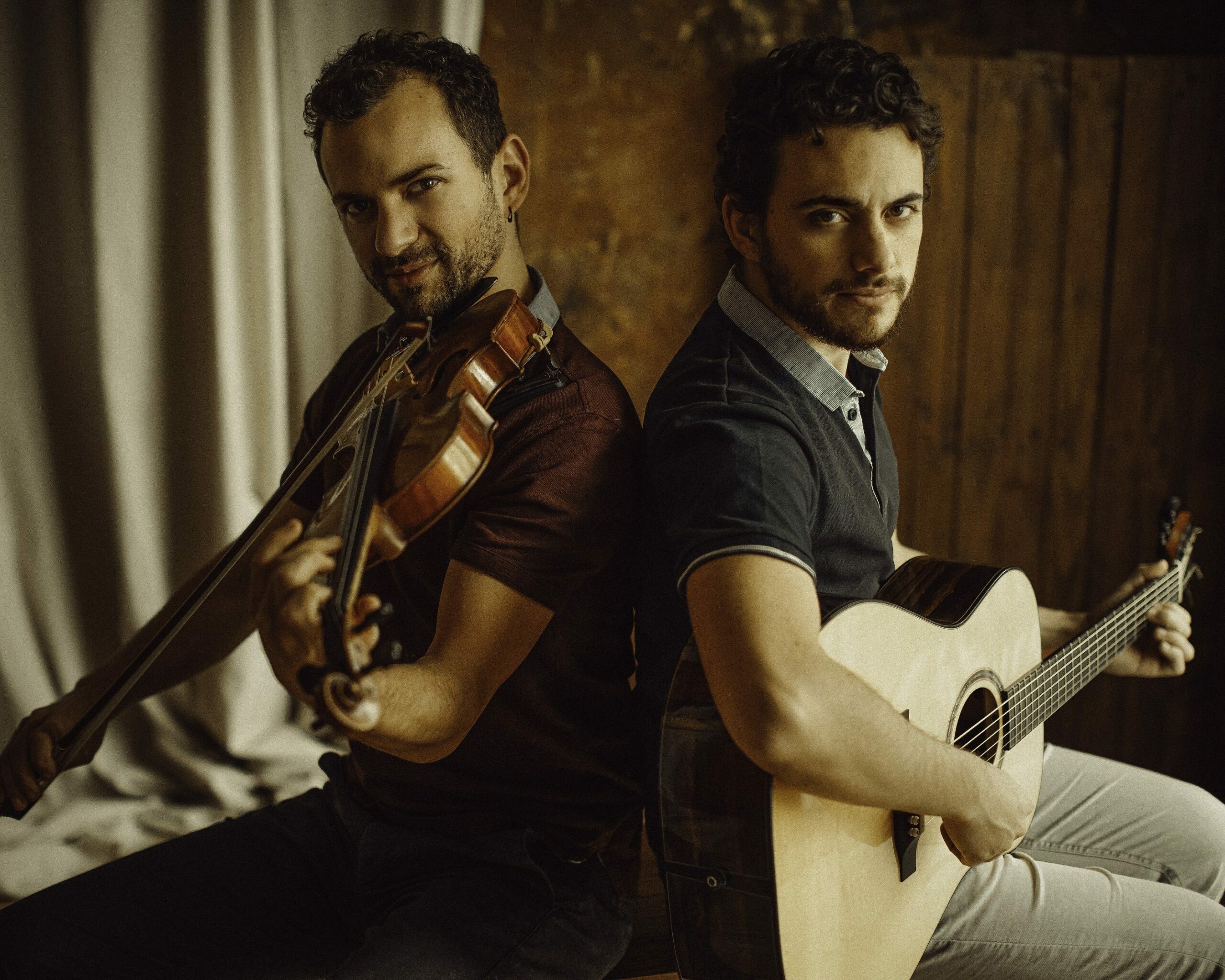 Julien au violon et Nans à la guitare nourrissaient une telle passion commune pour la musique à danser, que personne n’a été vraiment surpris de retrouver les deux frères sur la même scène pour animer bals, rendez-vous festifs et autres concerts. Au fil des années, leur duo, nourri par leurs trajectoires respectives au sein de différentes formations folk, jazz, rock ou classique, s’est tissé un nom et surtout un son.