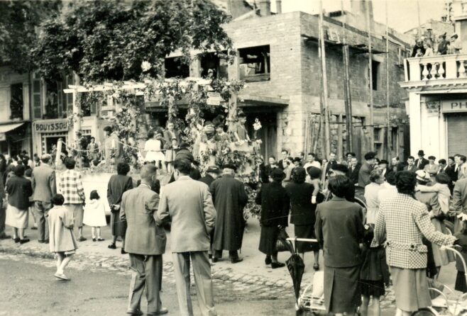 Photo Boulevard Gambetta, en arrière-plan, le Café du Midi à laissé la place à un nouvel immeuble en construction (photo années 60).