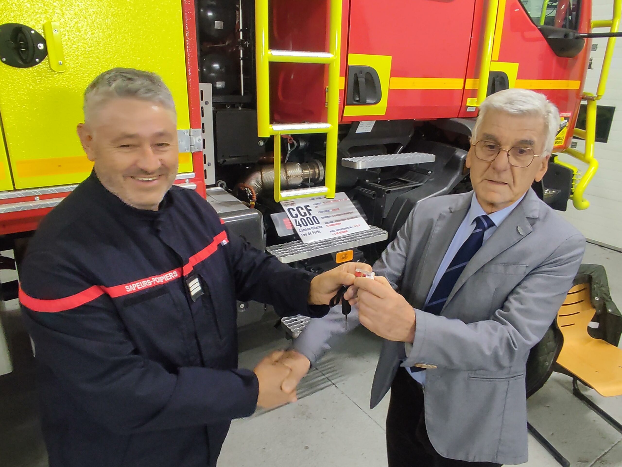 La remise des clés s’est déroulée entre Fausto Araqué, vice-président du conseil d’administration du SDIS 46 et le capitaine Patrick Forte, chef de centre, en présence du colonel hors classe Jean-François Galtié, directeur départemental du SDIS 46. Cet événement marque une étape clé pour la caserne de Cajarc, désormais équipée d’un outil performant et moderne au service de la protection des habitants et des espaces naturels du territoire.