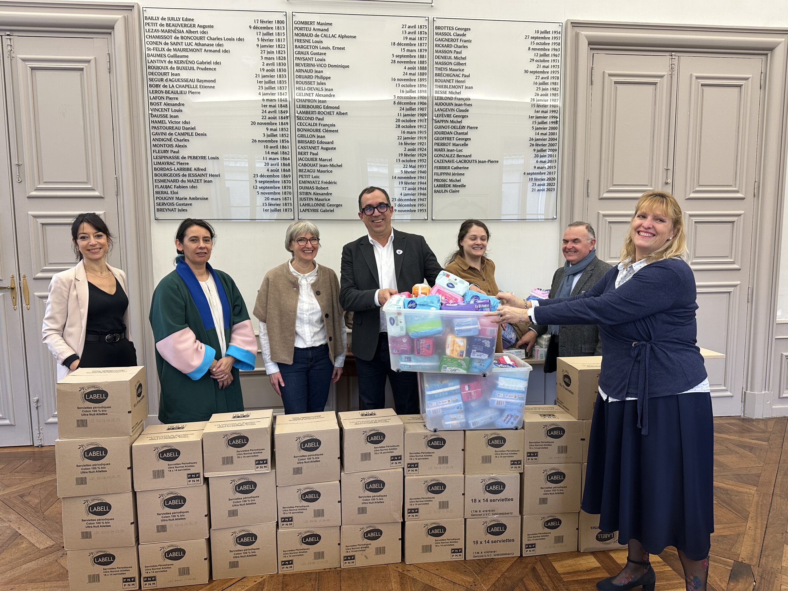 L’union fait la force. A l’initiative de la MGEN, la préfecture du Lot, la DSDEN (Direction des Services Départementaux de l’éducation nationale), l’ARS, le Conseil départemental, l’hôpital de Cahors, et les mutuelles du groupe VYV (Harmonie Mutuelle, MNT et MGEN) avaient lancé une grande collecte de serviettes périodiques pour lutter contre la précarité menstruelle dans les collèges et lycées du département. Le succès a été au rendez-vous. Les partenaires se sont retrouvés le 12 décembre à la préfecture du Lot pour dresser le bilan de l’action. « 12 000 serviettes ont été récoltées. Le Lot a montré sa capacité à faire ensemble. L’objectif est de lutter contre la précarité menstruelle » a déclaré Marc Majorel, responsable relations institutionnelles et ESS Occitanie Ouest à la MGEN, aux côtés de Michel Coulon d’Harmonie Mutuelle. « L’hôpital s’est mobilisé ainsi que ses partenaires : maisons de santé pluridisciplinaires de Lalbenque et Prayssac et la Banque Alimentaire » a rappelé Sonia Neurrisse, directrice générale de l’hôpital de Cahors. « Les boîtes à collecte sur les sites du Département ont permis de récolter 1000 serviettes. Cette 1ère opération est un succès. Cela a aussi permis de lever un tabou » a indiqué Nelly Ginestet, vice-présidente du Département. « Il était temps de s’emparer de ce sujet. On peut être fier de notre territoire rural. J’espère que cette opération va s’étendre à d’autres départements » a conclu Hélène Raynal, présidente de la MGEN. « C’est un résultat exceptionnel » s’est félicitée Delphine Soulignac. La conférence de presse s’est achevée par la remise symbolique d’un carton de serviettes périodiques à Christèle Hoscar, secrétaire générale de la DSDEN.