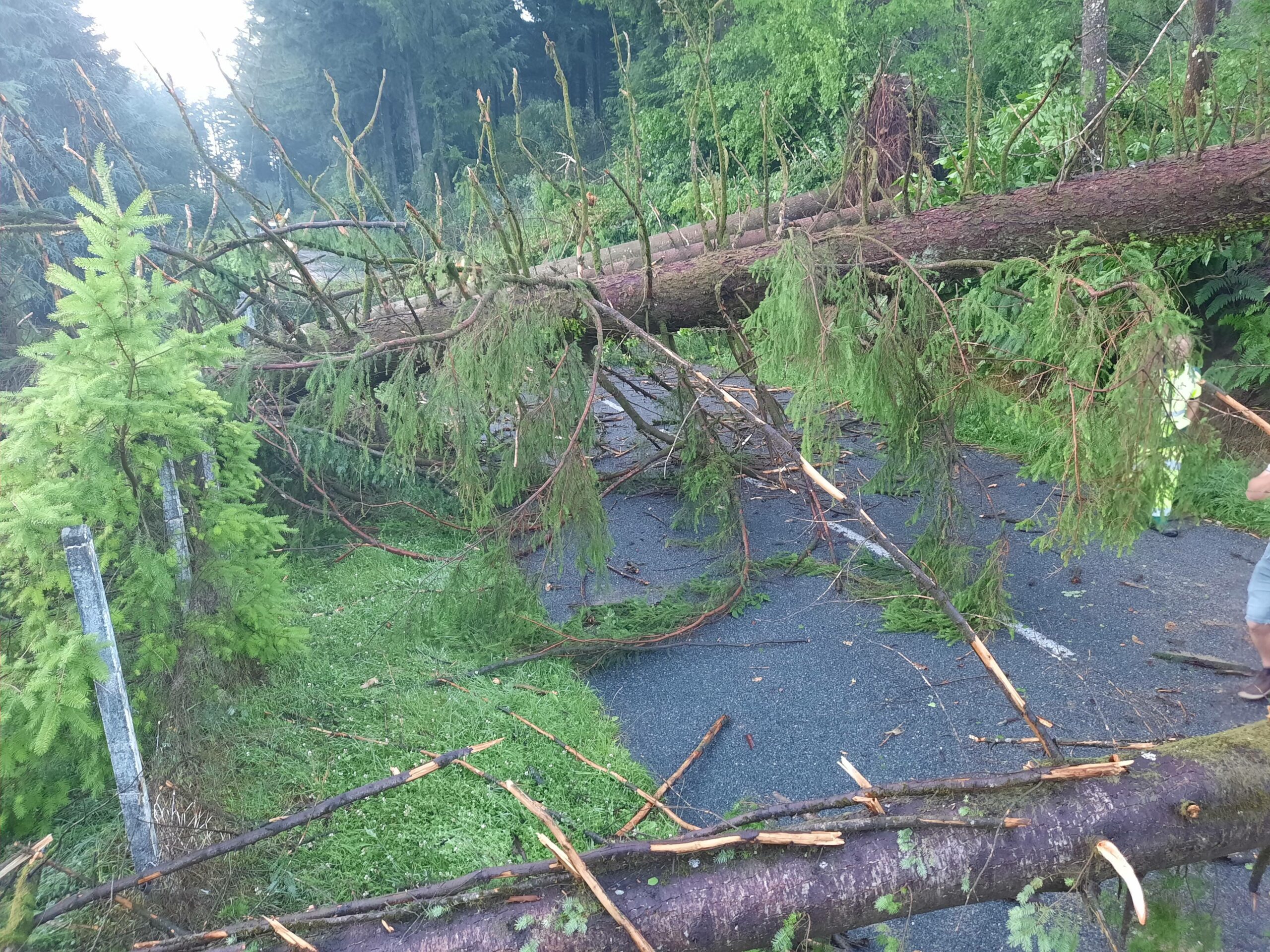 Suite à une mini-tornade qui s’est formée cette nuit, plusieurs arbres sont tombés sur les routes dans le secteur de Saint-Céré. La RD 30, barrée au niveau de Frayssinhes cette nuit, a été libérée ce matin par les agents du Département. La RD 653 entre Sousceyrac et Sénaillac-Latronquière restera bloquée toute la journée, barrée par une quinzaine d’arbres d’environ 1,50 mètres de diamètre. Les agents du Département travaillent d’arrache-pied pour rouvrir la route d’ici la fin de soirée. Une déviation est mise en place par la RD 30.