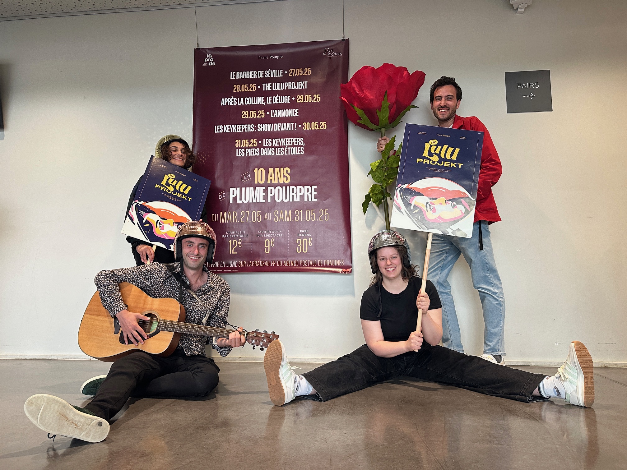 10 ans et pas une ride ! La Compagnie Plume Pourpre célèbre cet anniversaire de taille en jouant 6 spectacles en 5 jours à la Prade ! « On retrouvera nos incontournables : les KeyKeepers « Les pieds dans les étoiles » qui sera présenté au festival d’Avignon, et les KeyKeepers : Show devant mais aussi le Barbier de Séville revisité, « L’annonce », notre 1er spectacle que nous n’avons pas joué depuis 10 ans, « Après la colline, le déluge », et The Lulu Projekt qui sera joué en quadri frontal » annonce Brice Bord. Avant chaque spectacle des apéro-concerts devant la salle sont au menu. Un anniversaire à ne rater sous aucun prétexte.