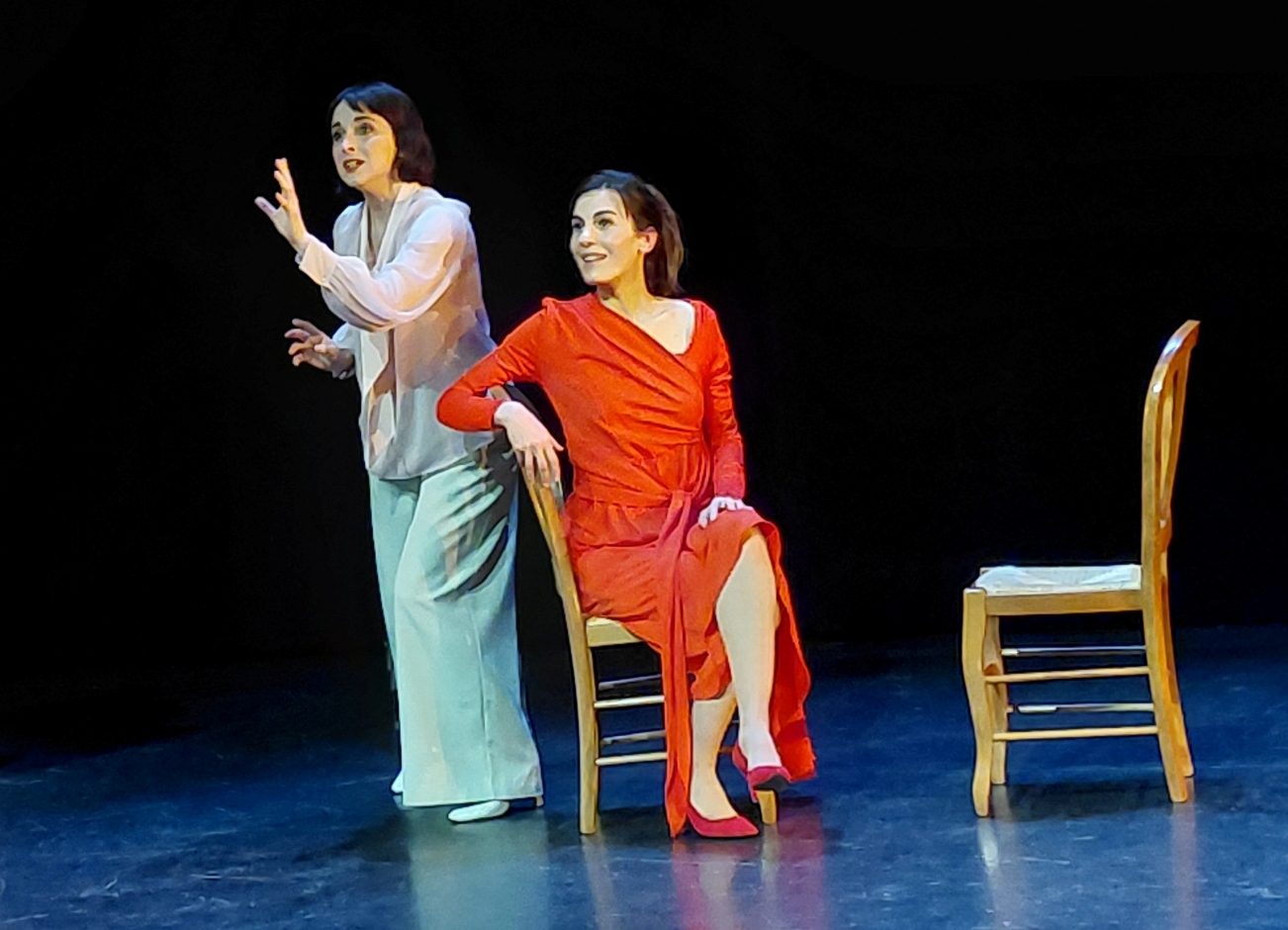 L’écoute du public de La Prade lors de la soirée organisée par AVEC Pradines le samedi 7 février était si intense que l’on aurait pu entendre les mouches voler… si les toux de certains, ne nous rappelaient bien que nous étions encore en hiver ! La beauté sereine était au rendez-vous pour ces « Chemins d’Amour » et les auditeurs ravis de retrouver ces textes si tendres et si intenses de Hugo, Apollinaire, Éluard, Musset, Marceline Desbordes-Valmore entre autres, dit avec cette belle fougue et le feu de Moana Ferré très habitée par ses textes. La musique des mélodies françaises s’intercalait avec tendresse et nous avons retrouvé Fauré, Duparc, Reynaldo Hahn, Debussy, Saint-Saëns, Berlioz chantés avec délicatesse par la belle voix pure de Elise Efremov qui trouvait la justesse de ces musiques très ciselées et les jouait en les incarnant. L’accompagnement de la pianiste, Charlotte Coulaud nous a envoûtés dès son somptueux Rêve d’amour de Liszt joué sur un piano électronique qui avait eu la méchanceté de lui briser l’orteil. Une merveilleuse soirée pleine de grâce dans une mise en scène subtile de Samuel Debure qui mettait bien en valeur le charme souriant des interprètes éclairées en douceur par Cyril Desclés. Douceur, calme et volupté étaient bien au rendez-vous et le public a retrouvé la sérénité de vivre pendant cette respiration fluide et enchantée.