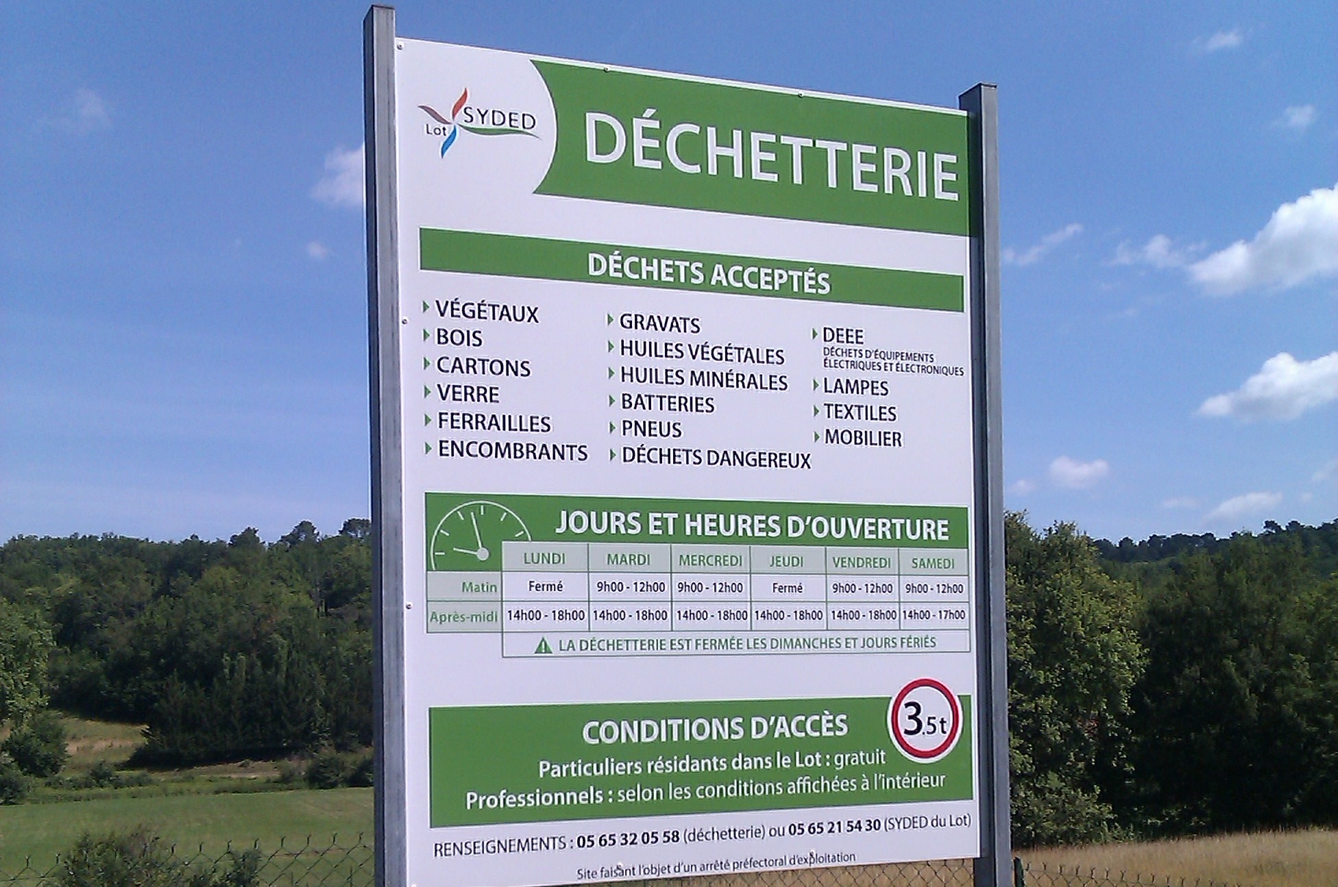 Les déchetteries du Lot seront exceptionnellement fermées le lundi 27 novembre 2023. Elles rouvriront le mardi 28 novembre aux horaires habituels.