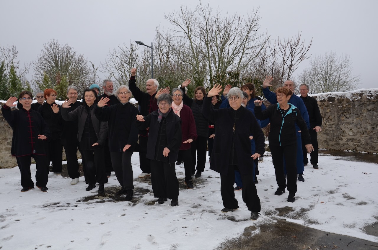 L’anniversaire des 10 ans de l’association puis une assemblée générale, animée par des adhérents avides de programmer de nouveaux projets, avaient clôturé l’année 2022 de Taichi Chuan Pradines-Chansi en apothéose.L’année 2023 sourit aussi au club et emprunte le même chemin du succès. Elle a commencé justement par un stage de découverte. La curiosité des élèves, soigneusement attisée auparavant par quelques indices distillés en cours, s’est trouvée comblée grâce à des exercices nouveaux, toujours dans la pratique du style Chen, les samedi 21 et dimanche 22 janvier au foyer rural de Flottes. Après la journée de stage, est venu le temps des démonstrations par les élèves de Chansi puis par quelques élèves du club Lao Jia de Cahors ayant accepté l’invitation de Chansi. L’occasion pour les deux clubs de montrer leur pratique respective et de partager l’apéritif. Pour clôturer cette première journée et célébrer le Nouvel An chinois, année du lapin d’eau, tous se sont retrouvés autour d’une bonne table. La coïncidence a voulu que le troisième club de Taichi de Cahors s’y trouvait également, ce qui a permis d’échanger avec eux aussi.