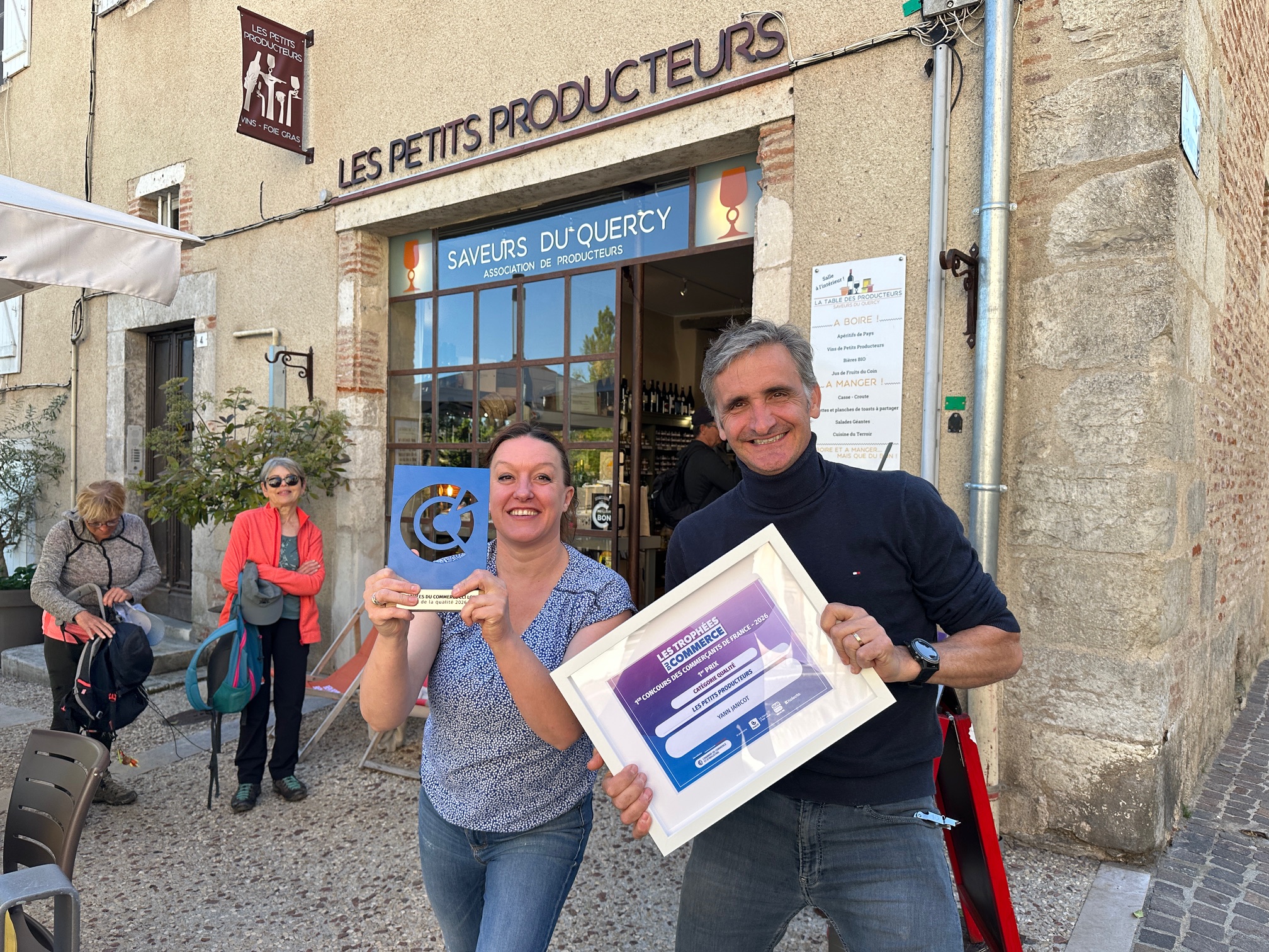 En mars dernier, Les Petits Producteurs de Cahors avaient reçu le Prix Qualité des Trophées du Commerce, premier concours national dédié aux commerçants français porté par le réseau des Chambres de commerce et d’industrie. Ce 16 avril, l’établissement cadurcien a fait coup double en remportant le 1er Prix régional dans la catégorie Qualité. « C’est top. Le commerce de proximité a un avenir dans nos centres-villes. On a fait le pari de resserrer notre offre autour des producteurs locaux. On est récompensé pour la qualité et l’expérience client. Ça me tient à coeur. On base tout sur la convivialité. Notre devise : Accueil sympathique garanti » a confié Yann Janicot aux côtés de Noémie qui est là depuis les débuts de l’aventure, il y a 10 ans. Et maintenant place à la finale nationale. Bravo !