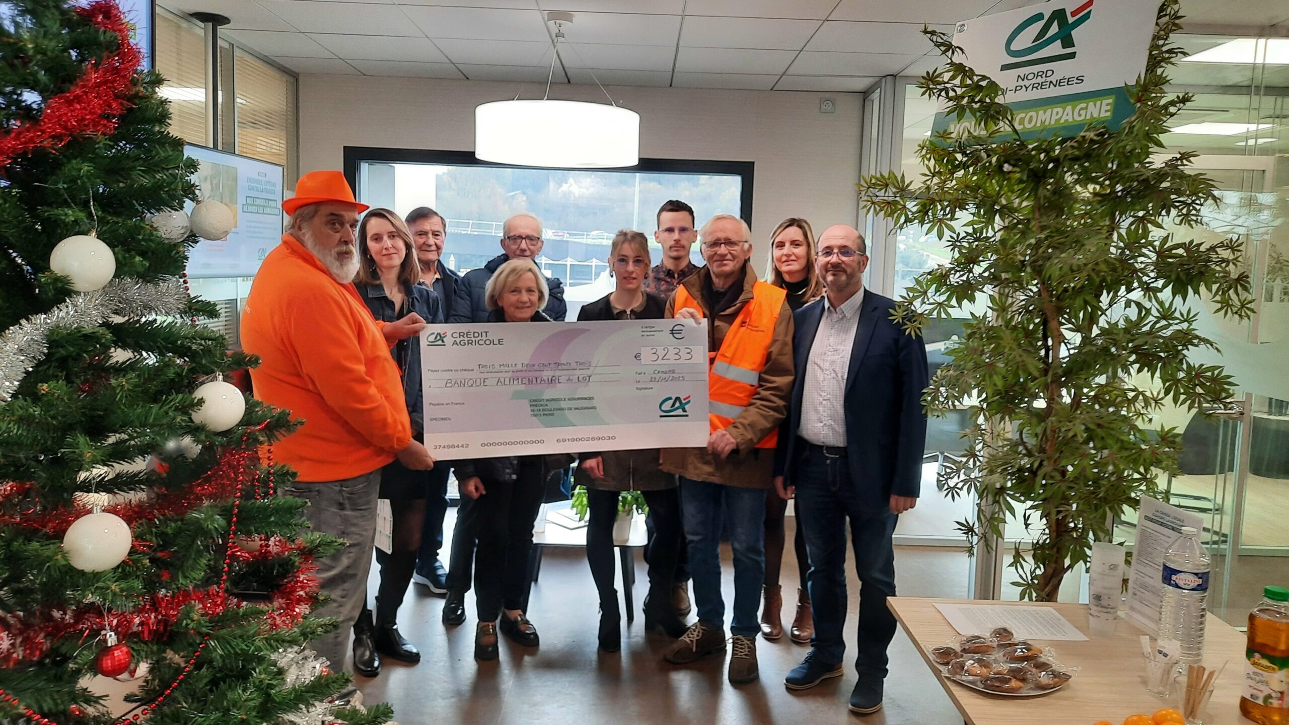 Dans le cadre de cette opération, le samedi 29 novembre, un chèque de 3 233 euros a été remis à la Banque Alimentaire dans les locaux de l’agence Crédit Agricole de Pradines en présence de Pierre Gastal et Francis Nadal, membres de l’association, et du directeur de l’agence Philippe Couderc accompagnés de clients et de collaborateurs de l’agence.