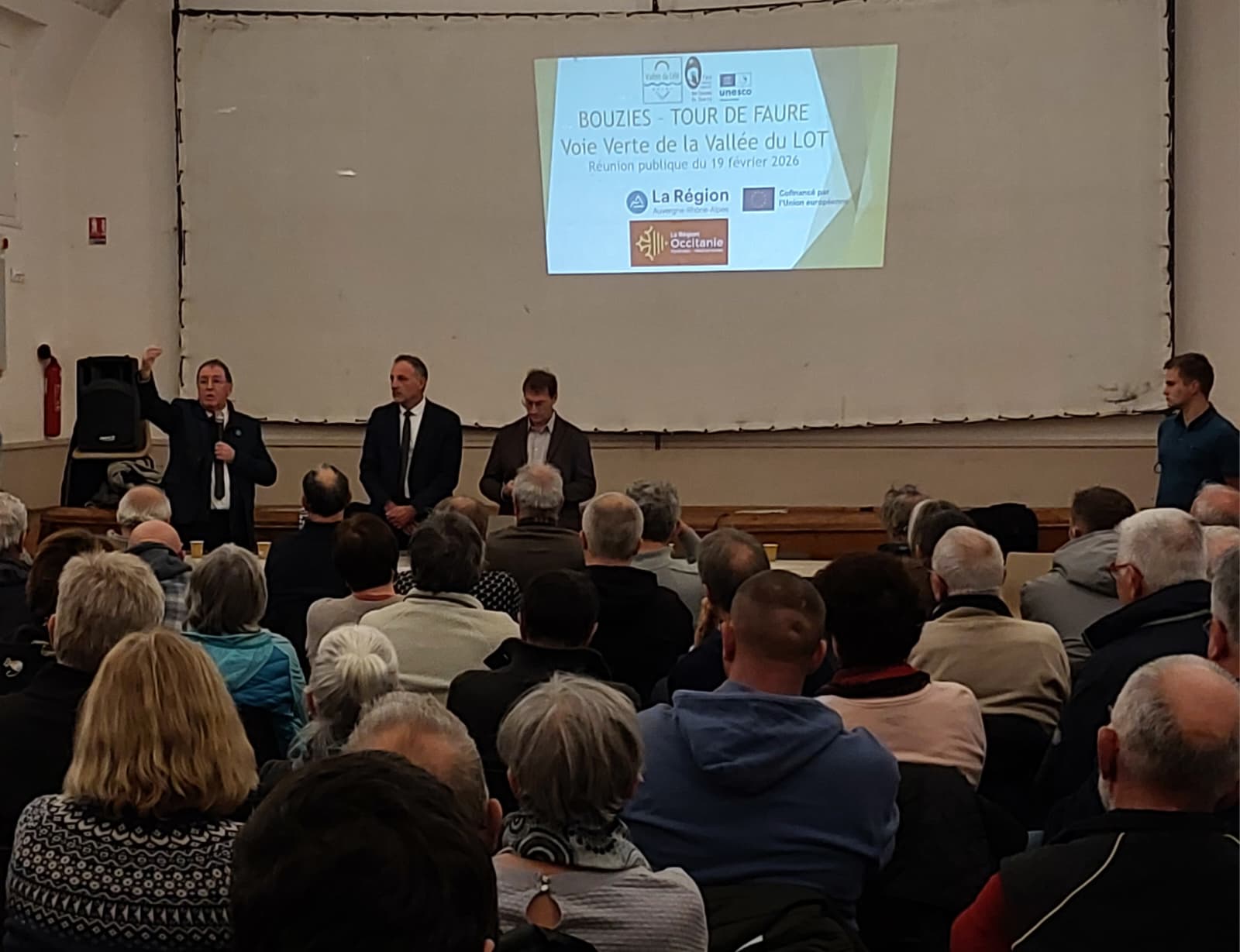Serge Rigal, président du Département et président du Syndicat mixte des voies vertes du Lot a animé, le 19 février dernier, une réunion d’informations qui a rassemblé plus d’une centaine d’habitants à la salle des fêtes de Tour-de-Faure pour présenter les détails du futur tronçon de la voie verte entre Bouziès et Tour-de-Faure, dont les travaux débuteront dès le mois de mars.